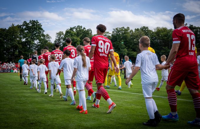AnsprechpartnerEinlaufkind bei einem Heimspiel unserer Profis sein. Davon träumen viele Kids, die sich für den Greifswalder Fußball interessieren. So ein unvergessliches Erlebnis ist gar nicht so weit weg, meldet Euch ganz einfach bei uns und begleitet unser Team mit auf den Platz im Volksstadion.