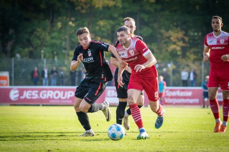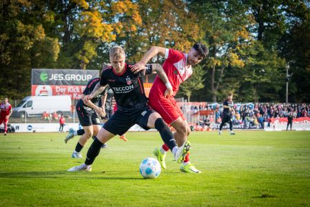 In der Halbzeitpause schien Trainer Zschiesche die richtigen Worte gefunden zu haben, denn unsere Jungs kamen richtig gut aus der Kabine. Brandt löffelte den Ball genau in die Schnittstelle zu Kratzer, der frei vor Otto auftauchte und es mit einem Lupfer probierte. Der Ball segelte allerdings über den Kasten (49.). Kurz darauf setzte sich Abu-Alfa über die linke Seite mit einem Dribbling durch und flankte den Ball rein. Erst verpasste Benyamina, doch am zweiten Pfosten kam Kratzer ran, traf den Ball jedoch nicht richtig (50.). Das waren zwei dicke Chancen innerhalb weniger Sekunden.