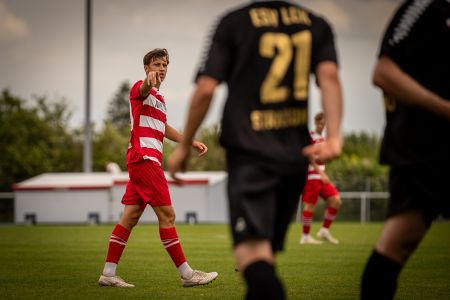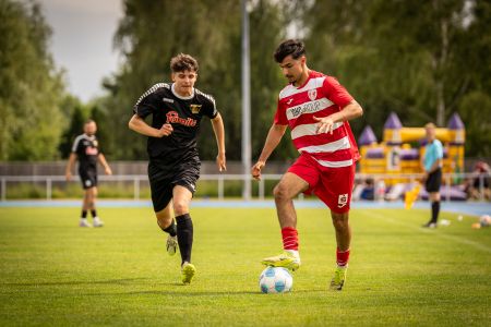 Für unseren Trainer ging es erneut darum Abläufe reinzubekommen. Im Vergleich zum Spiel am Vortag sollte es mit den Toren aber dieses Mal nicht ganz so gut klappen. Zwar waren unsere Jungs wieder durchweg dominant und gingen durch David Vogt in Führung, leider wurden sehr viele gute Gelegenheiten aber immer wieder liegen gelassen. Dennoch gefielen vor allem Diren Günay mit seiner Agilität und Grace Bokake Bolufe durch seine Wucht. Wie schon am Vortag gelang Letzterem wieder ein großartiger Treffer und das halbe Dutzend war bis zur Pause dadurch bereits voll.