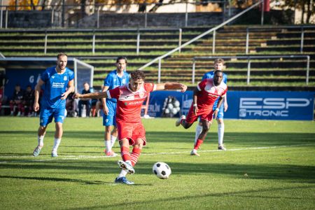 Es war der perfekte Start ins Spiel. Der für Abu-Alfa in die Startelf gerückte Ndualu erzwang durch starkes Anlaufverhalten einen Fehler. Nach Zusammenspiel mit Benyamina folgte das Foul im Strafraum und der Pfiff. Strafstoß! Benyamina nahm sich den Ball und versenkte ihn sehr sicher ins linke untere Eck, 1:0 aus GFC-Sicht. Danach aber fehlte in der ersten Halbzeit die Genauigkeit. Unsere Jungs verlagerten sich auf das Umschaltspiel, die durchaus vielversprechenden Ballgewinne konnten so allerdings zu selten in Torchancen umgewandelt werden.