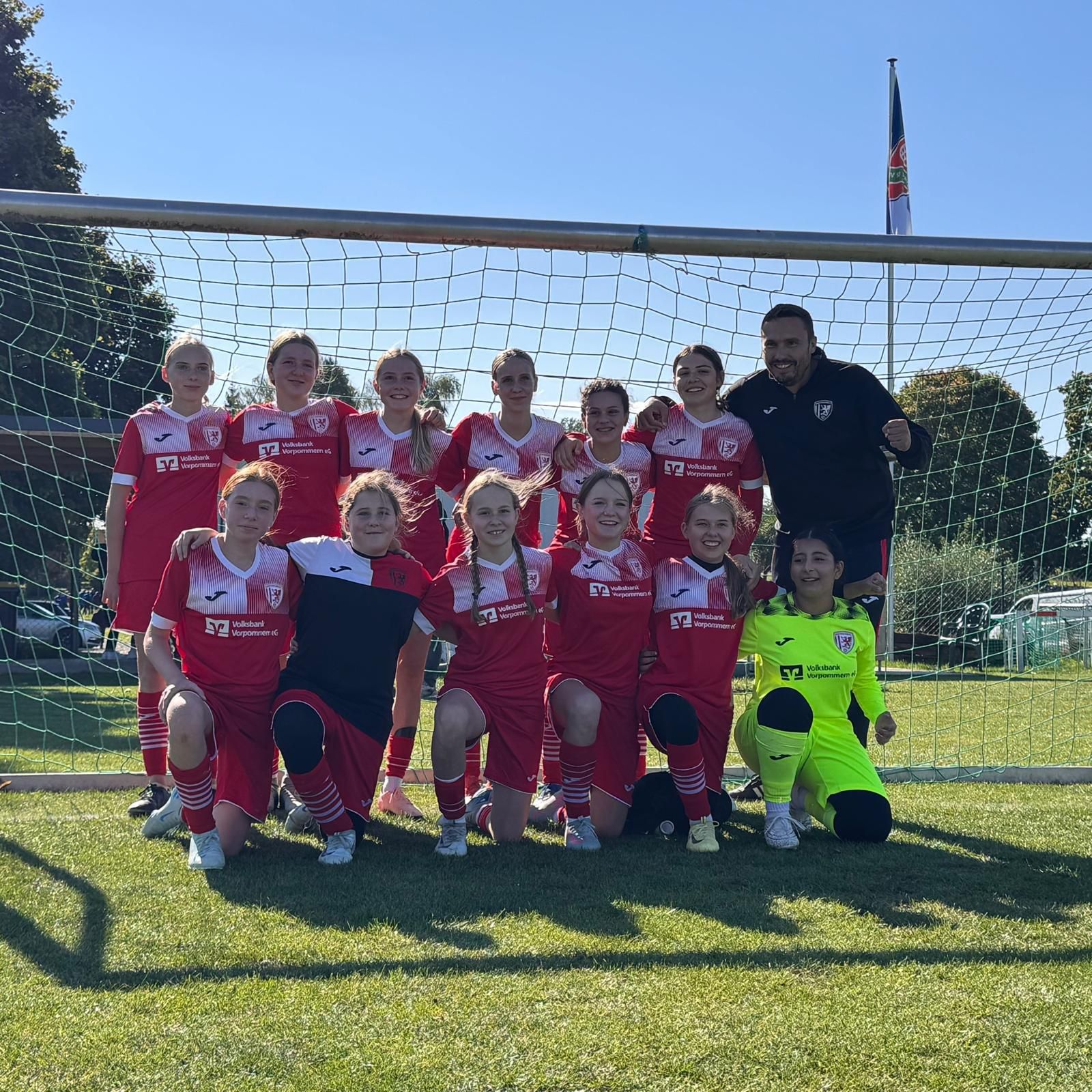 „Mit dem 4:0 zur Pause waren alle euphorisch und siegessicher“, erinnert sich Roß. Er mahnte hierbei jedoch, dass das Spiel noch nicht vorbei sei und die Mädels blieben fokussiert. Sie legten weitere Treffer nach und auch nach der Gelb-Roten Karte für Keeperin Hashemi blieben sie das bessere Team. „So eine Situation kannten wir noch nicht, aber wir haben das gut weggesteckt. Ich muss sagen, es war eine richtig richtig gute Teamleistung, ich kann da keine besonders herausheben, alle waren sehr gut“, freut sich Christopher. Am Ende stand es 9:1 und unsere Mädels feierten ihren ersten Pflichtspielsieg. Kommenden Sonntag geht es im Landespokal dann gegen den MSV Alt-Käbelich, da wollen die Mädels nachlegen!