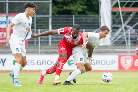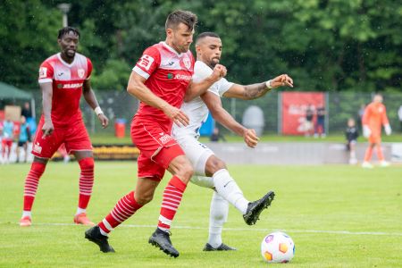 Mit der gleichen Startelf wie im letzten Test gegen den HSV startete unser Team um Lars Fuchs ins erste Regionalliga-Spiel der neuen Saison. Die von Tom Weilandt angeführte Mannschaft ging mit großer Spielfreude ins Spiel, konnte von Beginn an Druck auf die Eilenburger machen und sich immer wieder Chancen erspielen. Soufian Benyamina war es dann nach sieben Minute, der eine butterweiche Flanke von Jannis Farr einköpfte. Unsere Nummer 90 stand quasi in der Luft, erwartete den Ball und nickte dann sauber gegen die Laufrichtung von FCE-Keeper Naumann ein. Benyamina öffnete also in dieser Spielzeit die Tore für unseren GFC und bescherte unseren Fans den ersten Jubelschrei im Volksstadion.