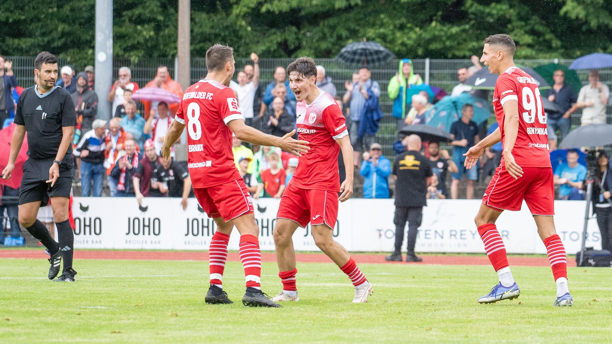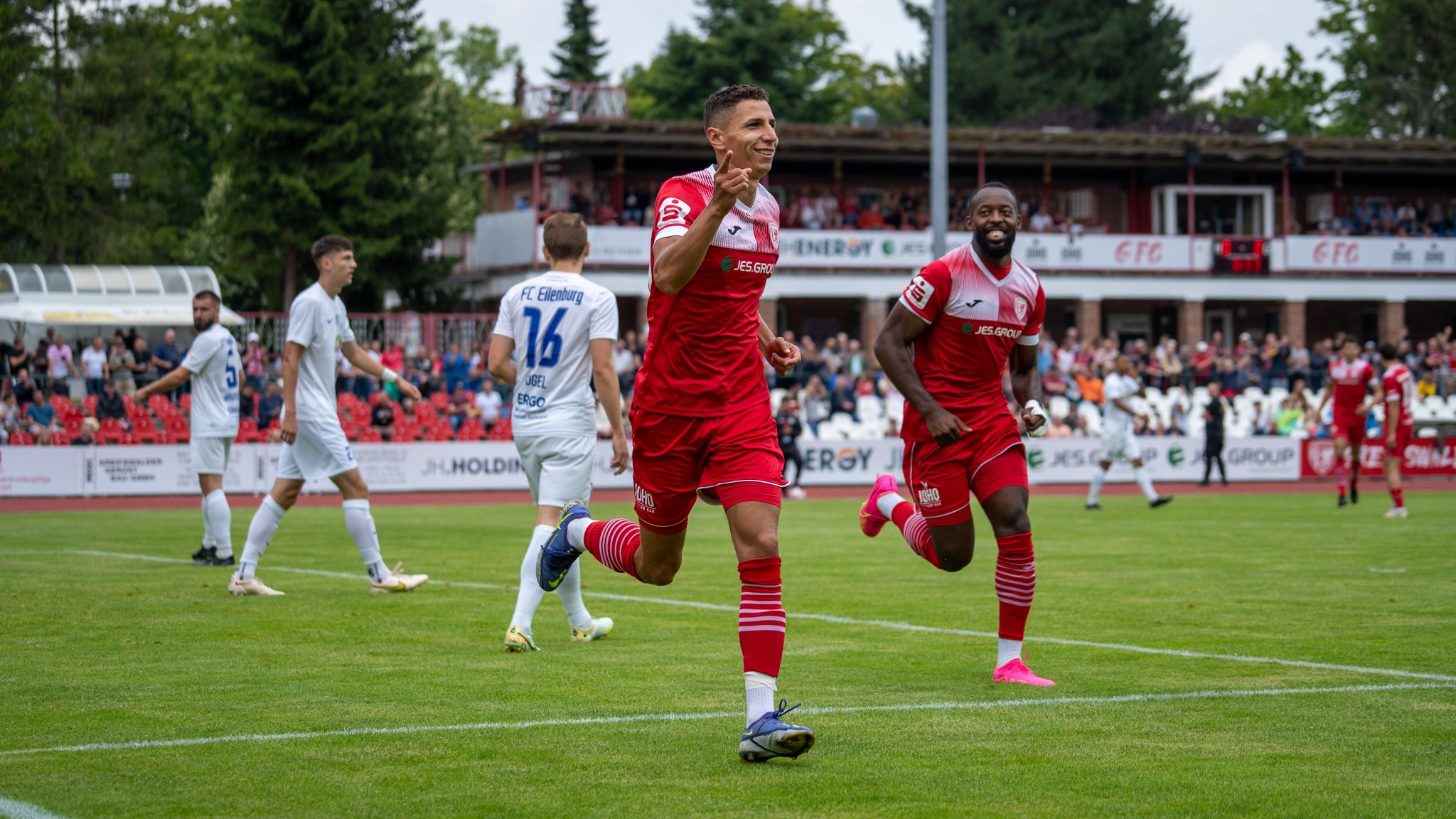 Auch in der Folge blieb unser Team spielbestimmend und konnte sich immer wieder Chancen erspielen. Am Ende musste es aber Mike Eglseder richten. Der Innenverteidiger blieb nach einer Ecke vorn und sah zu wie Tom Weilandt den Ball einfach nicht mehr hergeben wollte und mit den Eilenburgern quasi Katz und Maus spielte. Am Ende fand er mit seinem Pass in den Rückraum ebengenannten Eglseder, der den Ball sauber in die lange Ecke schob. Die Freude bei unserem Neuzugang war riesig und der Gruß ging sofort in Richtung Tribüne, auf der sein kleiner Sohn saß, der auch noch an diesem Tag seinen ersten Geburtstag feierte. Eine schönere Story gibt es wohl nicht.