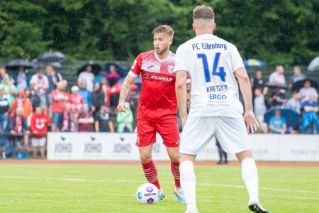 Dann schaltete unsere Elf einen Gang zurück, blieb aber weiterhin gefährlich und ging noch vor der Pause durch einen Patzer der Eilenburger in Führung. Nutznießer war Elias Kratzer, der ganz allein durch war und ohne Probleme das 3:0 erzielen konnte. Was für eine starke Halbzeit! Leider konnten unsere Kicker das nicht ganz mit in die zweite Hälfte nehmen. Die Eilenburger waren griffiger und ließen uns nicht mehr so viele Freiräume. Nach einem Foulspiel von Tobi Adewole gab es außerdem noch einen Elfmeter für die Gäste aus Sachsen. Tim Bunge verwandelte sicher und fügte unserem Team damit den ersten Gegentreffer der Saison zu. Es war dann nach dem 3:1 eher ein ausgeglichenes Spiel mit wenig Durchschlagskraft auf beiden Seiten und deswegen geht der Sieg für unseren GFC vollkommen in Ordnung. Mit einem Sieg in die Saison starten - das war unser erstes Ziel und das haben wir gepackt. Nächsten Samstag geht’s dann in Jena um die nächsten drei Punkte in der Champions League des Ostens.