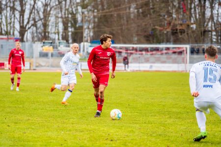 Bevor der Unparteiische die Partie anpfiff, wurde mit einer Schweigeminute an die Opfer und Verletzten in der Türkei & Syrien gedacht. Dann ertönte der Pfiff und der Greifswalder FC kam ganz ordentlich in die Partie. Nach nur drei gespielten Minuten fand ein Chip-Ball über die Abwehrkette der Jenaer Guido Kocer, der aus relativ spitzen Winkel abschloss und den Torwart das erste Mal testete. Danach strahlte der GFC immer weniger Torgefahr aus und der FCC wurde gefährlicher. In der 25. Spielminute spielte Keeper-Kamenz den Ball in die Füße eines Angreifers. Einmal quergelegt auf Stürmer Dedidis, welcher aber freistehend an Kamenz scheiterte, welcher damit seinen Fehler wieder ausgebügelte. 15 Minuten später ein Schreckmoment für unsere Nummer 7. In einem Zweikampf verletzte sich Guido Kocer und musste ausgewechselt werden. Wir wünschen auf diesem Wege gute Besserung und hoffen, dass wir Guido bald wieder auf dem Platz sehen.