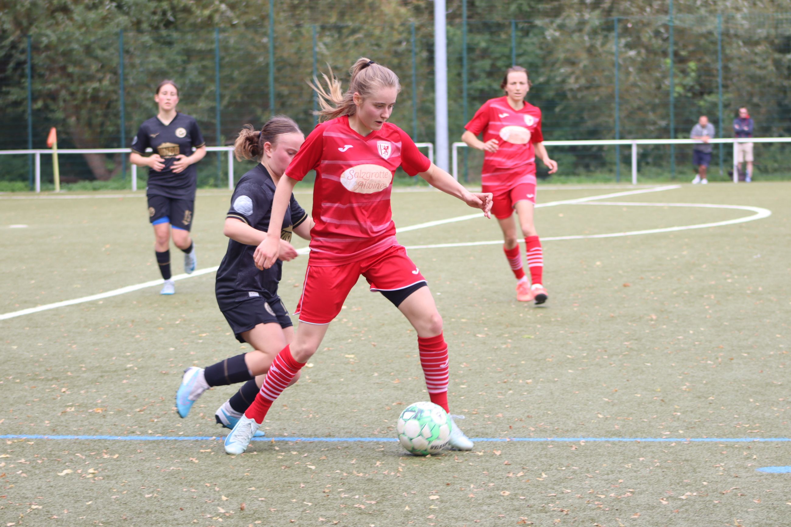 Nach Wiederanpfiff blieben unsere GFC-Frauen weiter gut drin, die Chancen wurden jedoch seltener. Stattdessen sollte Hansa weiter unfassbar effizient bleiben. In der 54. Minute tauchte erneut Jula Bergner frei vor unserem GFC-Gehäuse auf und musste zur Führung nur noch einschieben. Weitere fünf Minuten später köpfte Marie Schröter den Ball sehenswert nach einem Eckball ins Tor – 1:3. Nur wenige Minuten zuvor war Paula Falk noch aus spitzem Winken knapp am Ausgleich vorbeigeschrammt. Und auch nach dem nun deutlicheren Rückstand gaben unsere Mädels nicht auf und kämpften weiter. Eva Hoppe hatte nach einer einstudierten Freistoßvariante die große Möglichkeit zentral vorm Tor, schoss aber genau auf die Torhüterin. Erst in der 82. Minute keimte wieder Hoffnung auf. Dieses Mal war Paula Falk zur Stelle und wemmste den Ball nach einem Freistoß von Wiebke Gustmann in die Maschen. Der Keimling wurde aber nicht alt, denn nur Sekunden nach dem Anschlusstreffer machte Finja Bening mit einem Abstauber und dem 2:4 für Rostock alles klar. Eine bittere Niederlage für unsere Frauen, die die nächsten drei Wochen bis zum Spiel gegen die HSG Warnemünde aber nutzen werden, um dort dann den ersten Saisonsieg einzufahren!