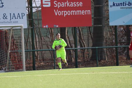 Und wenn wir schon von einem guten Start reden, dann darf natürlich auch der von unseren zweiten Frauen nicht fehlen. Das Team von Neu-Trainer Fabian Stei und Amira Haftendorn trat zur Neuauflage des letztjährigen Pokalfinals, dieses Jahr schon im Viertelfinale, beim FSV Grün-Weiß Usedom an. Zwei Mal in Folge wurden die Usedomerinnen nun schon Kreismeister, letztes Jahr reichte es dann sogar zum Double. In beiden Wettbewerben durch Siege in entscheidenden Spielen gegen unsere Kreisoberligistinnen. Wenig überraschend waren unsere GFC-Frauen heiß auf Revanche und schafften es, direkt in Führung zu gehen. Janka Holtz, die auch schon im Pokalfinale letztes Jahr traf, erzielte nach nur zwei Minuten die Führung für unseren Greifswalder FC! Leider konnten wir nicht sehr lange jubeln, denn nur fünf Minuten später traf Usedoms Top-Torjägerin Laura Keil zum Ausgleich. Im Anschluss war es ein ausgeglichenes Spiel, bei dem unsere Frauen sich auch immer wieder Chancen auf dem gewohnt gewöhnungsbedürftigen Geläuf erspielten, nutzten diese jedoch nicht zur erneuten Führung. Stattdessen liefen die Frauen dann kurz vor der Pause genau in das gefährliche Umschaltspiel der Grün-Weißen hinein und kassierten, erneut von Laura Keil, noch vor der Pause das 1:2 – ärgerlich!