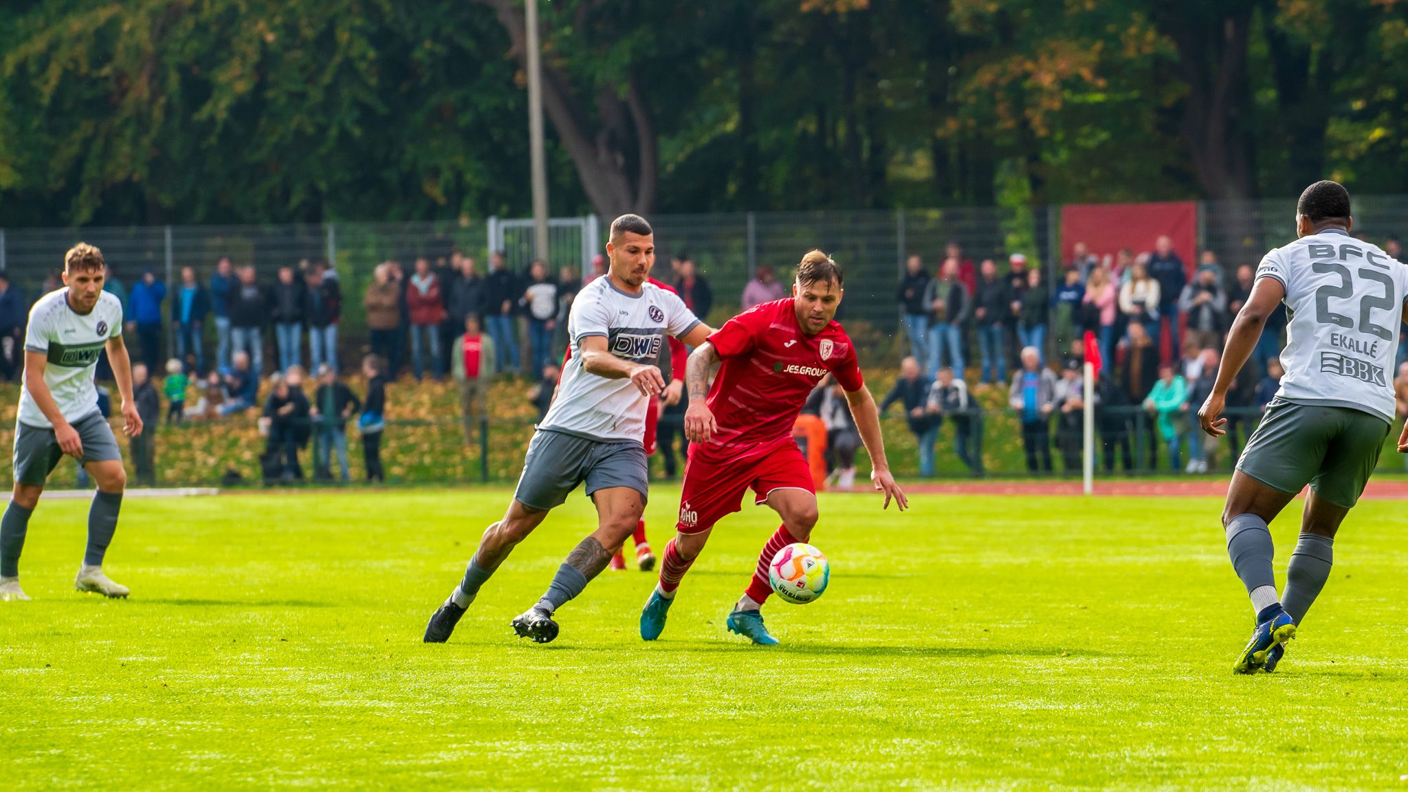 Fünf Spiele, vier Tore, vier Mal unseren ersten Treffer erzielt. Das ist die Bilanz von Soufian Benyamina, der seinen zweiten Frühling erlebt. Der Torgarant ist in herausragender Form und lebt den Einsatz, den Willen und die Leidenschaft, die unsere Mannschaft in dieser Saison bislang auszeichnet, ganz besonders vor. Auf diese Weise werden auch die jüngeren Spieler mitgenommen, die sich den ehemaligen Zweitligaprofi als Vorbild nehmen können und noch einiges lernen. Auch Trainer Lars Fuchs wird nicht müde den Routinier für seine Leistungen auf dem Platz aber eben auch daneben zu loben. Einzig beim letzten Heimspiel traf Benyamina nicht, da war Oliver Daedlow erfolgreich. Der kehrt nach auskurierter Verletzung gegen den BFC zurück, genau wie der zuletzt gesperrte Manassé Eshele.