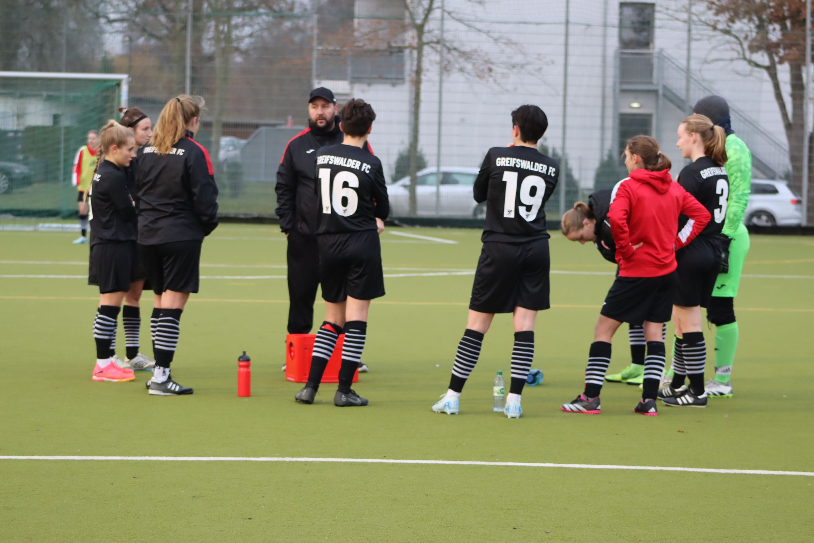 Unsere Mädels zeigten sich aber gefestigt und wussten mit dem Rückstand umzugehen. Leonie Tebrügge setzte nur fünf Minuten nach dem 0:1 gut nach und erzielte den 1:1-Pausenstand. Nach Wiederanpfiff kombinierten sich unsere ersten Frauen dann stark durch die Hintermannschaft der Gastgeberinnen und Wiebke Gustmann bereitete mit einem One-Touch-Pass die 2:1-Führung, erneut durch Tebrügge, sehenswert ein! Leider kam aber auch Stralsund nochmal wieder zurück. Die Mannschaft von Sebastian Sachon nutzte die Ungenauigkeiten und einfachen Fehler unserer Mannschaft gut aus, sodass Lara Schön mit einem Doppelpack für die 2:3-Niederlage unseres GFC sorgen sollte. Ein ärgerliches Ergebnis zum Abschluss, schaut man jedoch auf die Entwicklung der Mannschaft, sollte sie uns nicht zu sehr zurückwerfen. Unser Team feiert Weihnachten auf dem dritten Platz der Verbandsliga. Nach den letzten Jahren ist das ein Sensationsergebnis und zeigt, dass die Mannschaft auf dem richtigen Weg ist. Weiter so!