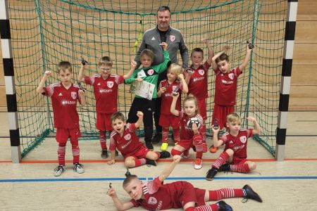 Für unsere U7 ging es zum letzten Hallenturnier dieser Saison. Beim Turnier des FC Förderkader René Schneider belegte das Team von Torsten Ziesemer einen guten dritten Platz. Im ersten Spiel gelang den Kids mit einem klasse Kombinationsspiel ein deutlicher 4:0-Sieg gegen den späteren Turniersieger. Danach gelangte der Ball in den nächsten Spielen jedoch einfach nicht mehr ins Tor, sodass viele Chancen vergeben wurden. Zwei Siege, zwei Unentschieden und zwei Niederlagen bedeuteten am Ende Platz drei. Für Trainer Torsten Ziesemer trotzdem eine gute Leistung, da das Team hauptsächlich aus Spielern des Jahrgangs 2018 bestand, während die restlichen Teams mit 2017ern spielten. Zusätzlich dazu wurde Luc Postrach in die Turnierauswahl gewählt.