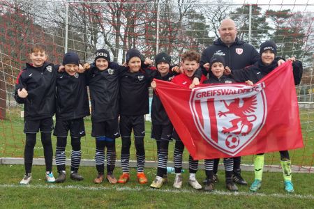 Ähnlich erfolgreich verlief das Viertelfinale des Kreispokals für die U10. Das Team von Stefan Lange besiegte die SV Eintracht Zinnowitz souverän mit 12:2. Bereits um 09.00 Uhr ging es los. Fünf Minuten nach Anpfiff stand es bereits 2:0 für unsere Jungs durch Lennard Zeisset. Der Anschlusstreffer der Gastgeber zum 1:2 in der siebten Minute brachte unseren Nachwuchs nicht aus dem Gleichgewicht, sodass sie nach 25 Minuten bereits deutlich mit 6:1 führten. Und auch in Halbzeit zwei ließen die Greifenkids nichts anbrennen. Die Dominanz der Jungs zahlte sich aus. Mit 12:2 ziehen die Jungs souverän ins Pokal-Halbfinale ein.