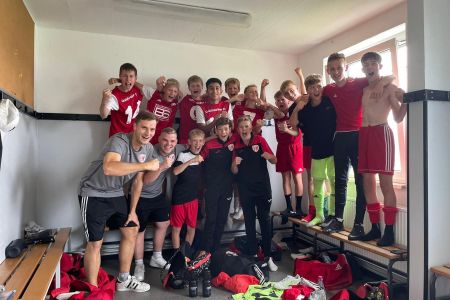 Es war an Spannung nicht zu überbieten. Es war Pokalwochenende, nicht nur für unsere ersten Herren, sondern auch für Teile unserer Nachwuchsteams. Unsere C-Junioren zum Beispiel mussten Auswärts ran. Am Freitag noch mit einem 6:0 im Testspiel beim HFC Greifswald erfolgreich, sollte es für unsere C2 am Sonntag dramatisch werden. Beim FSV Bentwisch entwickelte sich ein Pokalfight par excellence. Nach gutem Beginn fingen sich unsere Jungs einen Konter ein, der sie zur Halbzeit in Rückstand brachte. Das korrigierten sie in der zweiten Hälfte. Sie waren bei den langen Bällen der Hausherren hellwach und verteidigten gut, machten aber auch weiterhin das Spiel. Lenny Mohr und Elias Textor drehten das Spiel und alles sah nach einem Weiterkommen aus. Eine Minute vor dem Ende dann aber doch der Ausgleich nach einem Freistoß – Verlängerung. Dort gingen wir durch Alex Voigt erneut in Führung, der nach einer Ecke Volley zum Abschluss kam. Wieder sah es nach dem Sieg aus, doch erneut der Rückschlag. Mit der letzten Aktion des Spiels entschied der Schiedsrichter auf Elfmeter für Benwtisch. Der konnte zunächst gehalten werden, doch unser Torwart hatte die Linie zu früh verlassen, sodass er wiederholt wurde. Dieses Mal traf Bentwisch zum 3:3 und es ging ins Elfmeterschießen. Dort blieben unsere Jungs dann aber nervenstark und trafen allesamt. Torwart Finn-Niklas Fiedelmann parierte hier erneut einen und so setzten wir uns am Ende doch noch mit 8:7 durch und zogen emotional in die nächste Runde ein!