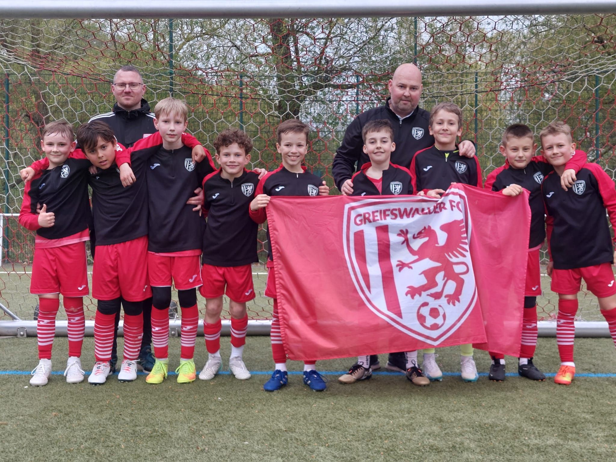 Lange Gesichter gab es bei unserer C1, die bei der U14 von Mecklenburg Schwerin antrat. Laut Tabelle eigentlich eine klare Angelegenheit. Erst ein Mal ging das Team von Christian Kohr in dieser Verbandsligasaison nicht als Sieger vom Platz, das war beim Remis gegen Spitzenreiter Neubrandenburg. Trotz deutlicher Überlegenheit gerieten unsere Jungs früh in Rückstand, zeigten mit dem 1:1 von Marko Bajars und wenig später dem 2:1 durch das erste Saisontor von Fabian Roß eine gute Reaktion. Bis zur Pause hätte das Team das Chancenplus in weitere Treffer ummünzen müssen, es blieb allerdings zunächst beim 2:1 für uns. Nach der Pause verpassten es unsere Jungs erneut, den Vorsprung auszubauen, sodass Schwerin nochmal wieder wach wurde. Nach einigen hervorragenden Paraden von Philip Bartusch passierte es dann doch und der 2:2-Ausgleich fiel. Zwar drückten unsere Greifenkids danach auf den Siegtreffer, er sollte aber leider nicht fallen uns so blieb es bei dem Ergebnis.