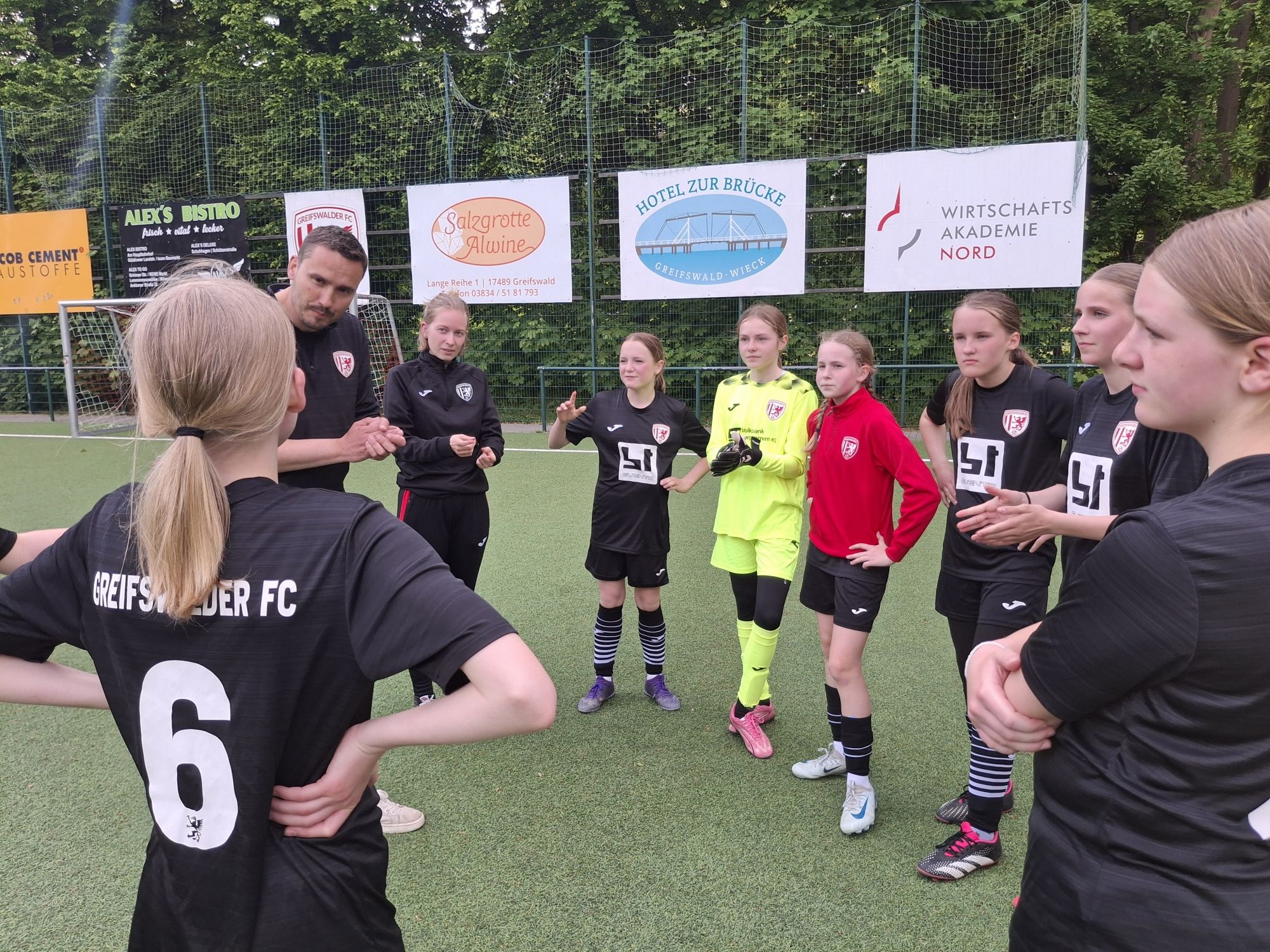 Offensiv gab es auch die eine oder andere Gelegenheit für Lara Timm oder auch durch einen Schuss von Anna-Lena Schumann, doch Carlo Renner im Tor der U11 zeigte sich hierbei souverän. Am Ende verfehlten die Jungs ihr Ziel um satte zehn Treffer, weil auch die Kondition bei unseren Mädels, die mit nur einer Wechslerin antraten, mittlerweile auf einem guten Niveau ist. Mit einem 0:15 verabschieden sich unsere D-Juniorinnen also aus der ersten Kreisligasaison, bei der die Ergebnisse zweitrangig blieben und die Entwicklung der einzelnen Spielerinnen und als Mannschaft im Vordergrund standen. Das Trainerteam ist stolz auf die Kleinen und freut sich schon auf die nächste gemeinsame Spielzeit. Bis dahin wird es noch einige Testspiele geben, das erste findet bereits am 25. Mai in Warnemünde statt – endlich mal wieder gegen Mädchen!