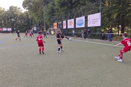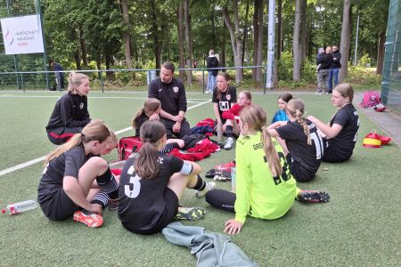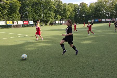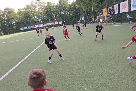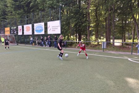 Für die Kleinsten aus unserem Mädchenbereich war es ein sehr spannendes, vor allem aber lehrreiches Jahr. Nachdem im vergangenen Frühjahr, auch durch die Mithilfe der Spielerinnen selbst, ein wahnsinniger Zuwachs an fußballinteressierten Mädels zu verzeichnen war, entschied das Trainerteam den Schritt in den Ligaspielbetrieb zu gehen. Da das Angebot für Mädchen eher überschaubar war, wurde der Schritt in die Kreisliga der Jungs gewagt. Klar war, es würde nicht immer einfach werden und die Ergebnisse würden nicht immer leicht zu verdauen sein, für die Entwicklung wäre eine solche Saison, auch gerade körperlich, aber das Beste, was man für die Mädchen tun könne. Und so zahlten die Kleinen auch eine Menge Lehrgeld. Hohe Niederlagen, hier und da ein paar Tränen und sehr viel Aufmunterungsarbeit durch das Trainerteam waren an der Tagesordnung. Doch die Mädchen gaben sich nie auf, bewahrten die Geduld, kämpften, lernten und versuchten ihre selbstgesteckten Ziele von Spiel zu Spiel zu erreichen. Nach einem Jahr lässt sich bilanzieren, dass sich diese Saison gelohnt hat. Aus anfänglichem Gewusel, bei der die Kleinen gerne noch alle auf einen Ball liefen, Positionsspiel ein Fremdwort war und der Mut in den Zweikämpfen oftmals noch fehlte, hat sich ein Team entwickelt, das keine Angst mehr hat, sich fokussieren kann und Mannschaften auch mal so richtig ärgern kann. So auch im letzten Spiel der Saison am vergangenen Mittwoch.