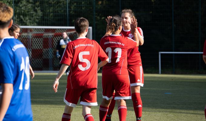 Unsere U10 hatte vergangenes Wochenende nicht unbedingt die besten Tage erwischt. Darum wollten sie am Sonntag gegen den SV Loitzer Eintracht nun in der Kreisliga eine ordentliche Leistung abrufen. Und genau das merkte man den Greifenkids auch an, die sich am Ende klar und deutlich mit 12:0 durchsetzten. Parallel wurde noch ein Leistungsvergleich gespielt, bei dem die Spieler zum Einsatz kamen, die nicht im Ligaspiel antraten. Dort konnten Siege gegen den HFC Greifswald, den FSV Karlshagen und den 1. FC Neubrandenburg eingefahren werden. Also, eine deutliche Leistungssteigerung, sodass sich die gute Trainingswoche auch auf das Wochenende übertragen ließ. Gleiches könnte man über die U13 sagen, die zum Verbandsligaauftakt auf den SV Warnemünde traf. In den ersten Minuten war bei unseren Jungs noch ein wenig Nervosität zu spüren. Nicht immer kamen alle Pässe an, der Spielaufbau war etwas holprig. Mit zunehmender Dauer und auch durch das 1:0 gestärkt, wurde es aber immer besser. Die Jungs konzentrierten sich stärker und so hielt auch die Defensive besser stand. Immer wieder gab es Torgelegenheiten, die in großer Anzahl genutzt werden konnten. Ein fast schon zu perfektes Spiel mit und ohne Ball führte letztlich zu einem 15:0-Erfolg für unsere U13, stark! Leider reichte es zum Punktspielauftakt unserer U8 nicht ganz zum Sieg. Nach einer etwas schwierigen ersten Halbzeit in Görmin zeigte sich das Team unserer Ex-FSJ’ler Domenik Thrun und Niklas Mieß stark und steigerte sich immer mehr. Am Ende reichte es dann aber leider doch nicht für Punkte, denn das Spiel ging mit 8:9 verloren. Knapp, aber mit dem besseren Ende auf GFC-Seiten endete die Partie unserer U19. Das Team von Felix Gorgas konnte den Rostocker FC in Schach halten und mit einem 3:2 den ersten Saisonsieg einfahren.
