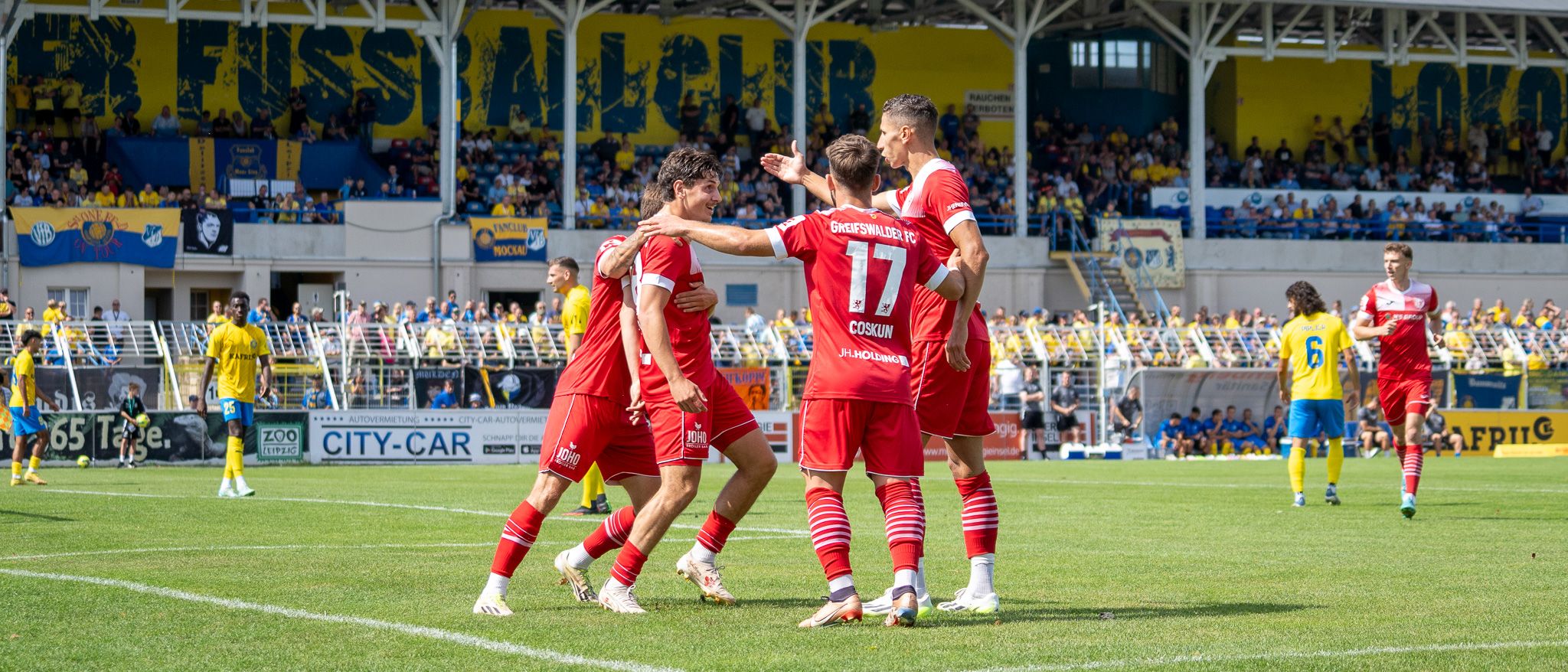 An diesen Song haben wir uns mittlerweile wirklich gewöhnt. Nach Siegen schallt er laut durch unser Volksstadion und wir feiern dann gerne die drei Punkte. Auch am kommenden Sonntag wollen wir ihn wieder hören, wenn passenderweise dann eine Lok zu Gast ist. Die aus Leipzig kommt voraussichtlich wieder mit vielen Fans in unsere wunderschöne Universitäts- und Hansestadt und wird erneut für ordentlich Stimmung sorgen. Gleiches erhoffen wir uns natürlich auch von unseren eigenen Anhängern, die uns mit Sicherheit gut unterstützen. Und warum auch nicht? Die Mannschaft zahlt es ja auch mit Leistung zurück und bringt uns oft genug zum Jubeln. Sehr wichtig war letztes Wochenende natürlich der Sieg beim SV Babelsberg. Gegen so ein starkes Team nach der vorherigen Niederlage die drei Punkte mitzunehmen, auch im Hinblick auf die englische Woche, war eine bärenstarke Leistung. Nun wollen wir natürlich nachlegen und alles reinwerfen, um die nächsten drei Punkte im Volksstadion zu behalten!