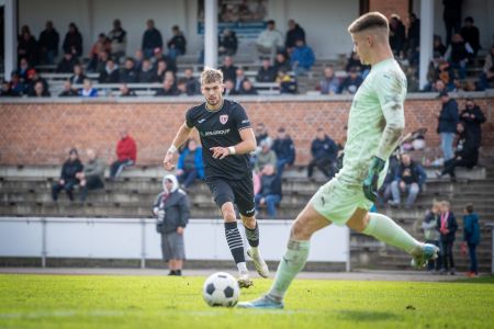Schon von Anfang an waren unsere Jungs die bessere Mannschaft, auch wenn die Gastgeber am Anfang noch gut mithalten und nach einem Fehler von Schmedemann in Person von Thesenvitz die erste Chance des Spiels auf ihrer Seite hatten. Jakubov war aber zur Stelle, sodass Schmedemanns Fehler ungestraft blieb (6.). In der Folgezeit war es jedoch überwiegend der GFC, der in der gegnerischen Hälfte auftauchte. Es gelang unseren Jungs bis dato aber noch nicht, in Sachen Torchancen wirklich zwingend zu werden. Die wahrscheinlich beste war dabei Schmedemanns Kopfball nach einer Ecke von Brandt, der jedoch über dem Tor von Anker-Keeper Borchardt landete (14.). Fünf Minuten später war es dann eine Flanke von Jannis Farr von der rechten Seite, die Benyamina nicht erreichte, da dieser im Strafraum von Lares Kodanek von den Beinen geholt wurde. Die Entscheidung von Rene Rohde war folgerichtig Elfmeter. Der Gefoulte trat dabei selbst an, verlud Borchardt in die andere Ecke und traf links unten zur 1:0-Führung für den GFC (20.).
