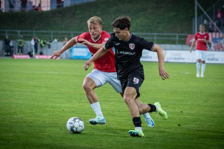 Die Doppelchance war für unsere Jungs wie ein kleiner Weckruf, denn plötzlich klingelte es auf der anderen Seite. Lämmel fand per Freistoß den Kopf von Strietzel, der den Ball hinter Leneis im Tor unterbrachte (30.). Nachdem Schlüsselburg die Chance zum Ausgleich liegen ließ (33.), erhöhten unsere Jungs. Bei einem langen Ball stimmte die Zuteilung in der Hintermannschaft der Zwickauer nicht, sodass Benyamina plötzlich frei aufs Tor zulief. Unser Angreifer umkurvte Leneis und schob den Ball mit links zum 2:0 ins Netz (36.). Direkt danach hielt Jakubov stark (37.).