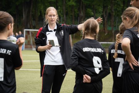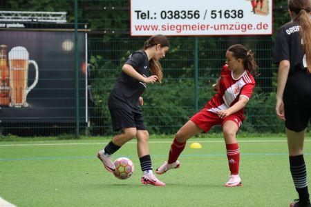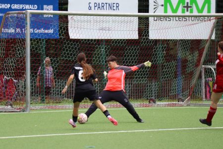 Auch unsere B-Juniorinnen trafen am Sonntag in einem Testspiel auf den Ludwigsfelder FC. Für unseren Nachwuchs ging es nicht nur darum, auch einmal auf ein Team außerhalb von MV zu treffen, sondern auch, um einiges auszuprobieren. So spielten sie unter anderem auf dem 9er-Feld, während sie im Ligabetrieb auf dem Kleinfeld spielen. Zu Beginn des Spiels ließen sich die Mädels von Sandra Gutmann-Tank und Paula Bartl noch etwas von den Ludwigsfelderinnen einschüchtern. Nach einer frühen Führung der Gäste aus Brandenburg gelang es ihnen jedoch, sich auf ihre Stärken zu besinnen und in das Spiel zu finden.