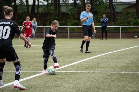 Nichtsdestotrotz gingen die Gäste relativ schnell in Führung, was unsere U13 etwas verunsicherte. Insbesondere die Defensive war in der ersten Halbzeit noch etwas starr, konnte bei gegnerischen Angriffen jedoch auch immer wieder beweisen, was in ihr steckt. Nachdem den Mädels in der Halbzeitpause noch einige Tipps an die Hand gegeben wurde, stabilisierten sie sich wieder und fanden noch einmal besser ins Spiel. Unsere GFC-Mädchen trauten sich mehr auch selbst in den Angriff zu gehen und hielten gegen die der Gegnerinnen noch stärker gegen. Leider konnten sie sich am Ende nicht belohnen und mussten sich mit einer 0:7-Niederlage geschlagen geben. Die Stimmung nach dem Spiel ist dennoch positiv.