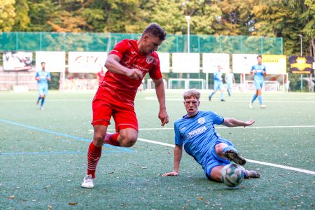 In der ersten Hälfte waren unsere Roten die spielbestimmende Mannschaft, leider ohne die Überlegenheit mit Toren zu belohnen. Der erkrankte Top-Torjäger Daniel Eidtner (8 Tore) schaute nur vom Spielfeldrand zu und so fehlten deutliche Chancen zur Führung. Die Gäste kamen mit Wiederanpfiff besser in die Partie und konnten mit einigen Kontermöglichkeiten vor dem Tor von Carl Claas auftauchen, oft jedoch ungefährlich. Nach etwas mehr als einer Stunde kam Niclas Gleisner ins Spiel und belohnte das Vertrauen des Trainers mit einem clever eingeköpften Ball nach Flanke von Philipp Sundt zum 1:0 in der Nachspielzeit. Nach dem direkten Abpfiff der Partie war die Freude und Erleichterung bei Spielern, Trainern und Betreuern riesig, hatte man sich doch schon mit einem Unentschieden und einem Punkt abgefunden. Nach sechs Spielen steht unsere Verbandsligamannschaft nun mit 13 Zählern auf Platz vier.