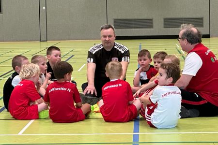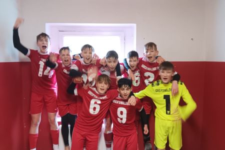 Auch die U12 gewann ihr Heimspiel gegen den FC Rot-Weiß Wolgast. Die erste Halbzeit gehörte unseren Jungs vom Greifswalder FC. Bereits in der dritten Minute brachte Ben Isserstedt das Team in Führung. Bis zur 16. Minute erhöhte dann Phil Strysewske mit zwei Treffern auf 3:0. Nur zwei Minuten später verkürzten die Gäste jedoch auf 1:3. Viel mehr passierte vor der Pause nicht mehr. In der zweiten Halbzeit erfolgte dann ungefähr eine Viertelstunde vor Schluss noch der 2:3-Treffer für die Wolgaster, der Sieg blieb jedoch in Greifswald.
