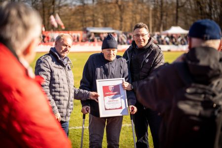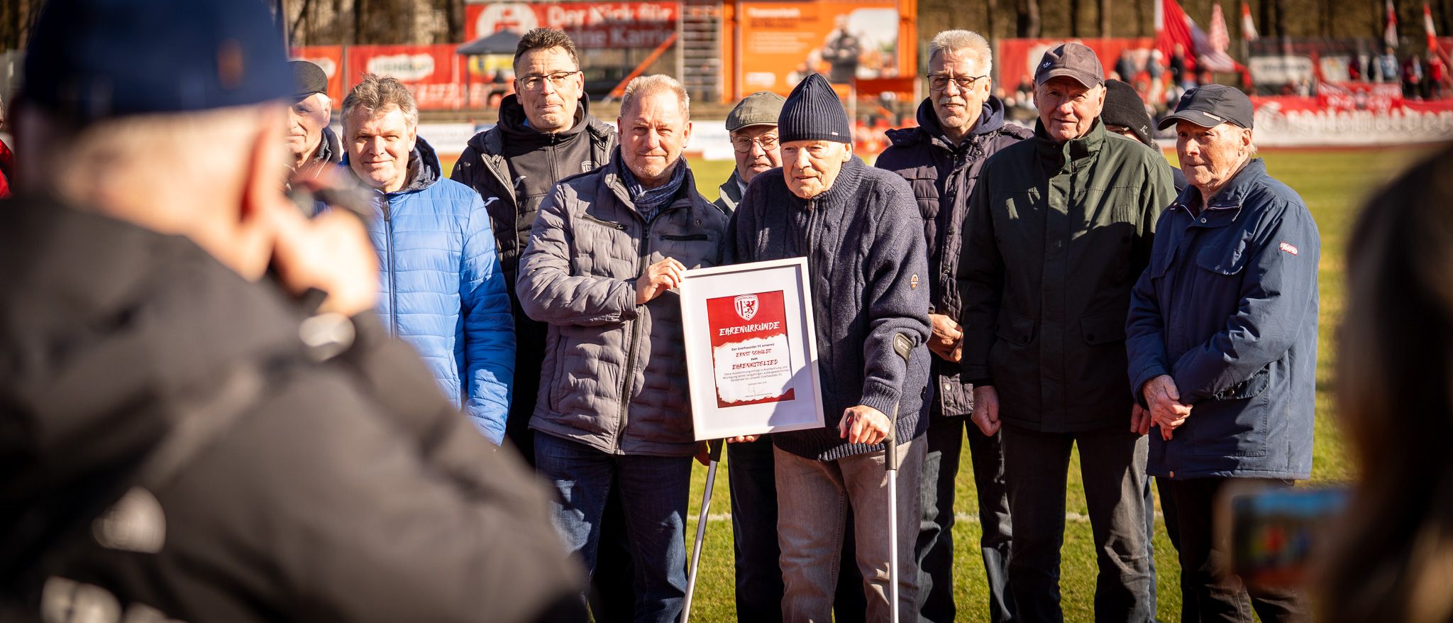 Im Rahmen der Halbzeitpause des Heimspiels gegen den ZFC Meuselwitz wurde eine besondere Persönlichkeit des Vereins geehrt: Ernst Schuldt ist offiziell zum Ehrenmitglied des Greifswalder FC ernannt worden.