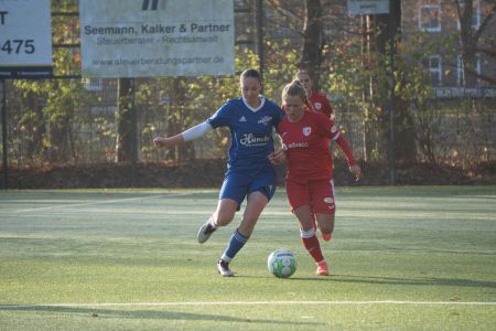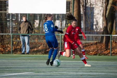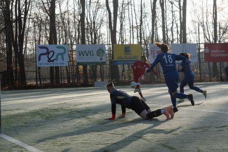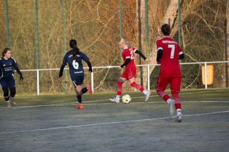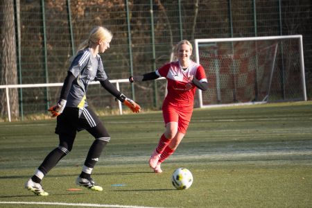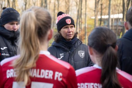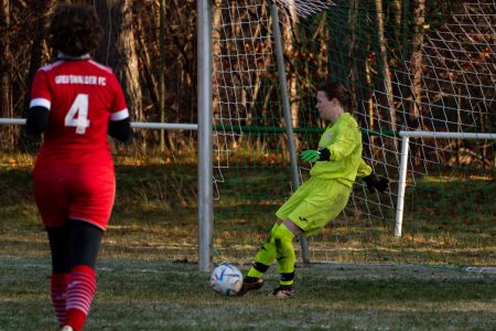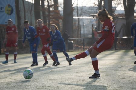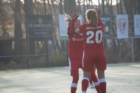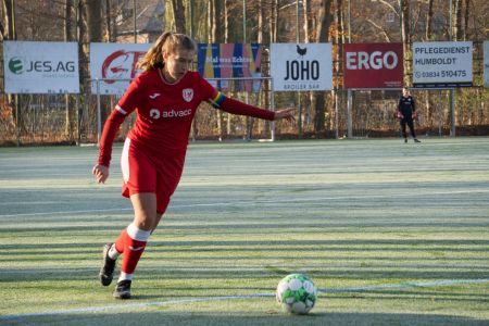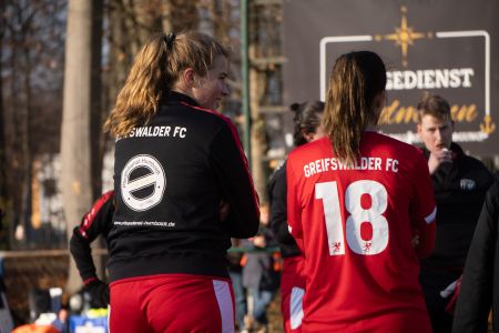 In der Verbandsliga der B-Juniorinnen kam Tabellenführer Lübz nach Greifswald. Unsere weibliche U17 wusste also, dass ein hartes Stück Arbeit vor ihr lag und ging konzentriert ins Spiel. Lange funktionierte die Abwehr um Käthe Schulz, Amalia Gonzalez Ladstätter und Kapitänin Anni Ziesemer fantastisch und Lübz kam kaum zu Chancen. In der Offensive fehlte dem Team hier und da ein wenig die Durchschlagskraft und der Mut zum Abschluss. Außerdem fehlte die beste Torschützin Maria Bardales Castro ohnehin verletzt, die zweitbeste Torjägerin Alena Stechert musste zwischenzeitlich dann auch noch angeschlagen vom Platz. Eine einzige Unkonzentriertheit bei hartem und gefrorenem Platz sorgte letztlich für den 0:1-Pausenrückstand.