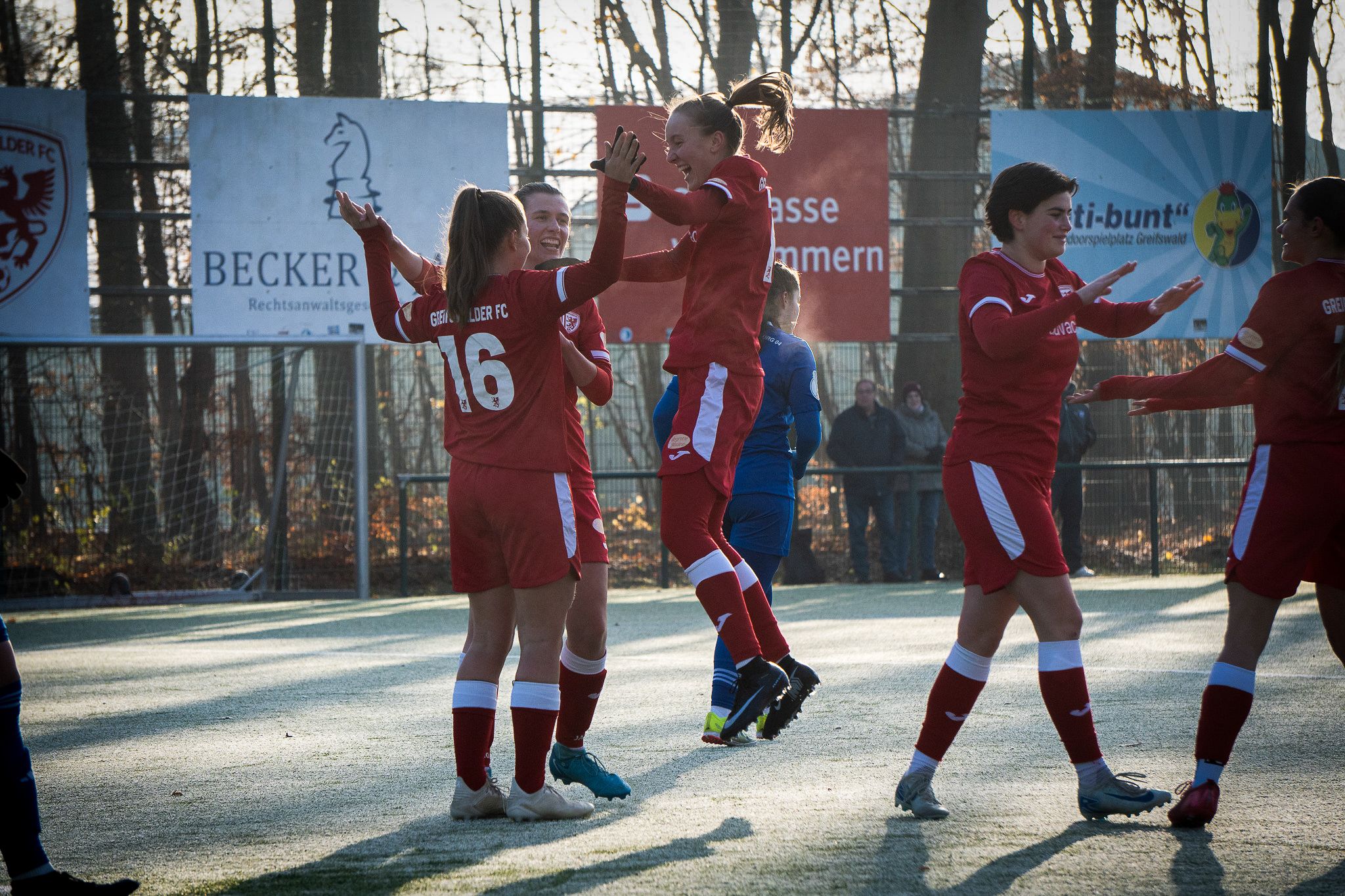 Etwas glücklich kam dann jedoch auch Neubrandenburg zurück ins Spiel. Eine Flanke wurde zur Bogenlampe, klatschte auf die Latte und von dort vor die Füße von Eileen Schulz, die einschob. Wenig später wischte Ricarda Mumm dann eine Neubrandenburgerin von den Beinen – Elfmeter. Neubrandenburg drehte so mit einem Doppelschlag nach einer halben Stunde das Spiel. Die Antwort kam aber umgehend, denn auch unsere GFC-Frauen bekamen nach einem Zweikampf von Leonie Tebrügge einen zugegebenermaßen fragwürdigen Elfer zugesprochen. Den verwandelte Kapitänin Wiebke Gustmann eiskalt zum 2:2-Pausenstand.