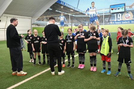 In der Rückrunde wurden die Regeln ein wenig angepasst. Die Spielzeit wurde von zehn auf acht Minuten verkürzt und bei einem Vorsprung von drei Toren musste das führende Team eine Spielerin vom Feld nehmen, um eine Unterzahlsituation herzustellen. Im ersten Duell mit Bambini FA gab es ein ähnliches Bild wie im ersten Spiel. Hohe Schüsse flogen über unsere Torhüterin Leni Strysewske, sodass sie wenig machen konnte. Alles, was sie halten konnte, hielt sie jedoch. Am Ende stand es hier 2:4, doch unsere Mädels behielten den Fokus wie vorgegeben auch die weiteren Spiele oben. Gegen den RFC II siegte das Team mit 5:0 und gegen Rambin gar mit 6:1. Im letzten Spiel des Turnieres kam das Team gegen den Rostocker FC nach zweimaligem Rückstand immer wieder zurück. „Ich war vor allem stolz darauf, dass ich mich auf jede einzelne Spielerin verlassen konnte, offensiv wie defensiv. Dass dann Luise bei ihrem allerersten Turnier zwei Tore macht und dabei sogar dieses wichtige 2:2 gegen den RFC, sagt eigentlich alles“, so Gürtler. Danach gab es sogar noch Chancen auf den Sieg, aber es blieb letztlich beim 2:2-Remis. Nach Turnierschluss gab es für alle noch eine kleine Medaille. „Die Turnierleitung lobte unser Team und meinte, dass wir in Sachen Technik, Spielaufbau und Blick für die Mitspielerin herausstachen. Das macht mich natürlich wahnsinnig stolz, weil sich zeigt, dass sich die viele Arbeit lohnt“, so der Trainer. Auf dem Heimweg wurde im Auto dann „Komet“ von Udo Lindenberg und Apache laut aufgedreht und mitgesungen – ein würdiger Abschluss eines großen Tages.