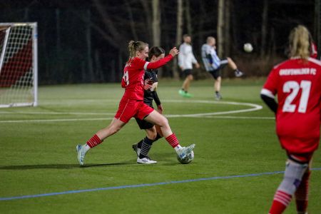 Im zweiten Spielabschnitt blieb es eine Partie auf Augenhöhe. Dennoch wusste unsere Dritte die Lücken gut auszunutzen und erspielte sich einige gute Möglichkeiten. Genutzt wurde aber lange keine. So blieb es offen und auch unsere Zweite kam somit zu Chancen. Aber immer wieder war Torhüterin Elina Schieback, ein Abwehrbein oder sogar mal das Aluminium im Weg. Es sollte an diesem Tag einfach nicht sein. Stattdessen erhöhte Cindy Schubert kurz vor Schluss nochmal auf den 3:0-Endstand. Nichtsdestotrotz fand Haftendorn lobende Worte für unsere Zweite. „Die Einstellung hat gestimmt, der Zusammenhalt auch und vor allem die eigenen Abstöße liefen sehr gut. Die Lernkurve hat gepasst und wir haben dir Dritte auf jeden Fall gut geärgert. Ich war also zufrieden mit der Leistung“, so Haftendorn nach Abpfiff.