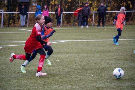 Apropos lernen. Darum ging es auch unseren kleinen U13-Mädchen am Wochenende. Die sind noch nicht im Ligaspielbetrieb gemeldet, fahren nur ab und an mal zu Turnieren oder absolvieren kleinere Freundschaftsspiele. So auch am vergangenen Sonntag. Erstmals gab es ein Heimspiel für die Mädchen, die sich allerdings mit Sicherheit ein anderes Wetter gewünscht hätten. Bei starkem Regenfall und niedrigen Temperaturen empfing das Team von Julia Krakow das Kreisteam aus Woldegk. Die dort ansässigen „Soccergirlz“ waren auch bereits Gegner beim Turnier in Warnemünde Anfang Oktober und sollten dazu dienen, weitere Erfahrungen zu sammeln. Die Wochen im Vorfeld der Begegnung nutzte das Trainerteam besonders um das Positionsspiel bei den Mädchen in die Köpfe zu bekommen und so ein Gefühl für die jeweiligen Rollen auf dem Platz zu schaffen. Dies setzten die Kleinen auch sehr gut um. Die sonst so häufig gesehenen „Klüngelchen“, bei denen alle nur auf den Ball gehen wollen, gab es daher gar nicht mehr. Leider belohnte sich das Team aber nicht für die durchaus ansprechende Leistung. Die Mannschaft um Kapitänin Pia Roß erarbeitete sich einige richtig gute Gelegenheiten, allein der Abschluss oder der letzte Pass waren oftmals nicht genau genug. Bei dem glitschigen Ball und nassem Kunstrasen waren die Bedingungen insgesamt aber wirklich schwierig. Die Woldegkerinnen hatten da etwas mehr Spielglück auf ihrer Seite und durften daher ein paar Treffer bejubeln. Torhüterin Amy Marquardt hatte ein paar Mal wirklich Pech, hielt einige Schüsse aber auch gewohnt überragend und verhinderte so eine noch deutlichere Pleite. Und auch die neuen Spielerinnen wie Miriam und Amalia fügten sich sehr gut ein und motivierten ihr Team nicht nur auf dem Platz, sondern auch von außen. Insgesamt war es als Team ein sehr solider Auftritt und ein weiterer Schritt in die richtige Richtung.