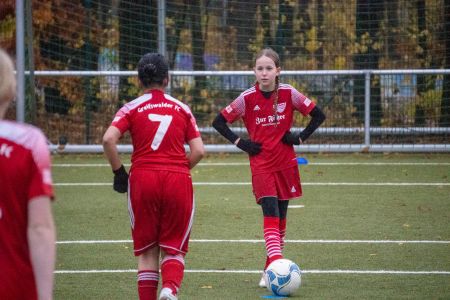 Nach Wiederanpfiff zeigten unsere Mädels dann aber endgültig, dass auch mit ihnen zu rechnen ist. Sie kamen gut zurück auf den Platz und hatten Bock sich nun auch endlich mal dafür zu belohnen. Ganz besonders viel Bock hatte das vortägige Geburtstagskind. Sieben Minuten in der zweiten Halbzeit gespielt fiel nämlich tatsächlich der Ausgleichstreffer. Torschützin: Paula Bartl. „Ich hab das jetzt nicht genial herausgespielt. Letztlich war da viel Kuddelmuddel und am Ende war halt mein Knie das Glückliche, das den Ball dann ins Tor befördert hat, mehr auch nicht. Aber gut, muss man natürlich auch erst mal mitlaufen“, schmunzelt die Torschützin, für die es aber nicht überraschend kam: „Ich hatte das auch so im Gefühl an dem Tag. Es war natürlich schön, sich nachträglich zum Geburtstag zu belohnen.“ Im Anschluss daran waren unsere Verbandsligistinnen dann auch am Drücker. Sie spielten richtig ordentliches Pressing und wollten nun auch in Führung gehen. „Es macht auch einfach einen Unterschied, wenn der Coach mit an der Seitenlinie steht. Er wusste, wie er uns motivieren muss und das hat uns weiter befeuert“, lobt Bartl Trainer Steven Oklitz. Und es gab sie auch noch, die Chancen auf den nächsten Treffer. Wunderkind Paula Falk zum Beispiel hatte eine große Schussmöglichkeit, leider wurde der Ball im letzten Augenblick von der Verteidigerin noch an den Pfosten gelenkt. Der Siegtreffer, er lag in der Luft. „Aber dann merkten wir vielleicht, dass ein Punkt gegen Schwerin auch gut ist und uns sicher mehr wert ist als dem Gegner. So haben wir uns wieder ein wenig hinten reindrängen lassen“, sagt Paula. Und so kam es, wie es kommen musste. Schwerin nutzte die Räume und nach vielen guten Paraden von Lilly-Fabienne Julius spielte der FSV einen Angriff dann doch noch sauber aus und erzielte den Treffer zum 1:2. Danach war Schwerin zu abgeklärt, als dass unsere Mädels ein weiteres Mal hätten zurückschlagen können und so blieb es leider bei der knappen Niederlage. „Dieses Mal war es wirklich ärgerlich. Eine Punkteteilung wäre gerechter gewesen“, bilanztierte Paula Bartl abschließend.