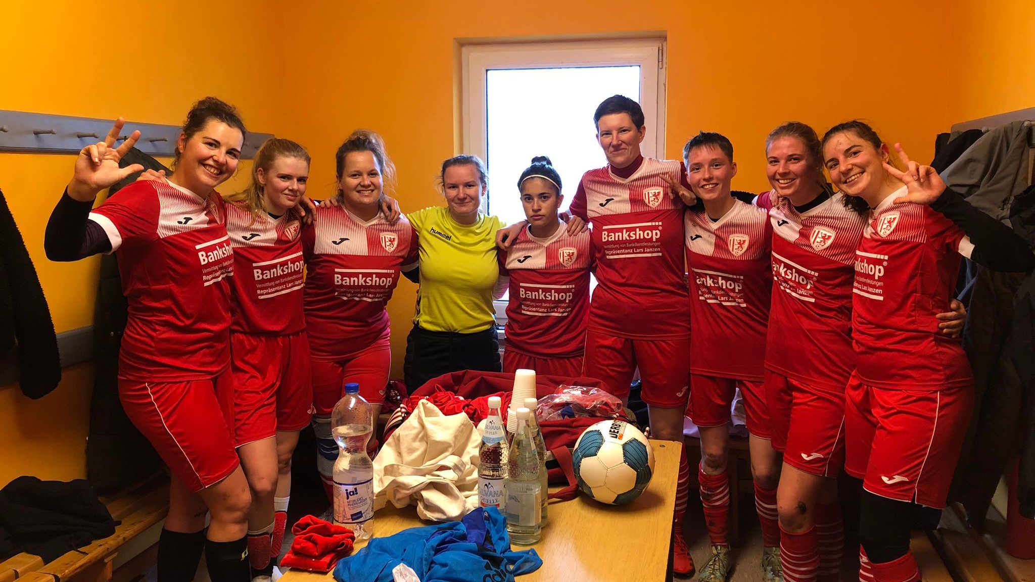 Was ist das nur für eine großartige Entwicklung bei unserer zweiten Mannschaft. In den letzten Jahren hatte das Team ja oftmals große Schwierigkeiten in der Kreisoberliga mitzuhalten. Seit dem Jahreswechsel hüpft sie nun aber von einem Erfolg zum nächsten. Auch der Saisonstart ist mal wieder sehr gut gelaufen. Nach dem 1:1 gegen Tutow folgten die Siege gegen Neubrandenburg und Kirchdorf, ehe es in der vergangenen Woche in Tutow den Halbfinaleinzug im Kreispokal zu feiern gab. Nun folgte aber das erste so richtig große Aufeinandertreffen. Es ging zum SV Motor Eggesin, also der Mannschaft, bei der wir im Juni den Kreispokal gewinnen konnten. In der Liga hingegen unterlagen wir in der vergangenen Saison beide Male und das wollten wir natürlich dieses Mal ändern. Unsere Mädels waren von Beginn an motiviert und gingen gut drauf, spielten einige starke Angriffe. Aufgrund einiger Ausfälle stellte sich die Mannschaft fast von selbst auf. Cindy Schubert rückte, wie schon zu Beginn der zweiten Halbzeit in Tutow letzte Woche, ins Mittelfeldzentrum und war die Schaltzentrale. Und erneut klappte das Zusammenspiel zwischen der Offensivreihe um Schubert, Michelle Empen und Janka Holtz sehr gut. Sie harmonierten fantastisch und spielten sich ordentliche Chancen raus, bis zur Halbzeit konnte jedoch keine genutzt werden. In der Halbzeit sagte Torhüterin Emilie Kuschel vielleicht den Satz, der entscheidend Einfluss auf den weiteren Spielverlauf nehmen sollte. „Wo sind denn jetzt die ganzen flachen Dinger, die du beim Aufwärmen reingemacht hast?“, fragte Kuschel die angesprochene Cindy Schubert. Es war eine gute Frage, die Cindy nur fünf Minuten nach Wiederanpfiff beantwortete. Genau solch einen Flachschuss brachte sie in Richtung des gegnerischen Tores und wurde belohnt. Wie schon vergangene Woche brachte sie uns in Führung! Nur drei Minuten später legten wir nach. Eine Ecke von Janka Holtz wurde nah ans Tor geschlagen und sorgte für Chaos. Eine Verteidigerin und die Torhüterin lenkten den Ball letztlich zum 2:0 für uns ins eigene Tor! Es schien alles für uns zu laufen, doch eine Viertelstunde vor Ende schaffte Eggesin dann doch den Anschlusstreffer und es wurde nochmal eng. Unsere Defensive um Isi Janzen, Henrike Grimm und der nach Verletzung endlich wieder zurückgekehrten Kapitänin Lena Swiatek hielt die restlichen Minuten stand. Dank des verdienten 2:1-Erfolges bleibt unsere Zweite als beste Offensive der Liga ungeschlagen auf dem ersten Tabellenplatz! Und schon am kommenden Sonntag folgt der nächste Kracher. Um 10 Uhr empfangen wir den Penzliner SV II im Volksstadion, wir erwarten Euch als unsere Rote Wand im Rücken!