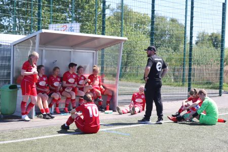 Leider gab es viele eher unnötige Gegentore aus der zweiten Reihe, die, bis auf eine sehenswerte hohe Bogenlampe, zu verhindern gewesen wären. Leider wurde aber die Schussbahn hier und da zu sehr offengelassen. Über die meiste Zeit warfen sich die Mädels aber aufopferungsvoll in die Zweikämpfe, liefen unheimlich viel und zeigten eine starke Leistung. Insbesondere Lara Timm über die rechte Seite bekam nach dem Spiel ein Sonderlob von allen Beteiligten für ihren Kampfgeist und vielen starken Defensiv- wie Offensivaktionen, die sie an dem Tag zeigte. Am Ende stand ein viel zu hohes 0:12 auf der Anzeigetafel, das aber rein von der Leistung auf dem Platz eher ein 1:4 hätte sein dürfen. Nichtsdestotrotz war es eine der besten Partien des Teams in dieser Saison, die bei den Voraussetzungen so nicht zu erwarten war. Am Mittwoch steht dann gegen die U11 unseres GFC das letzte Kreisliga-Spiel der Saison an, Anstoß ist um 16:15.