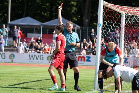 Die zweite Hälfte verlief dann etwas durchwachsener. Die Meuselwitzer kamen stärker zurück in die Partie und setzten unsere Abwehrreihe immer wieder stark unter Druck. Dennoch schmissen sich unsere Männer weiterhin rein und gaben alles. In der 63. Spielminute folgte dann jedoch der Tiefschlag: Elias Kratzer muss mit Gelb-Rot den Platz verlassen, nachdem er bereits in Minute 54 gelb sah.