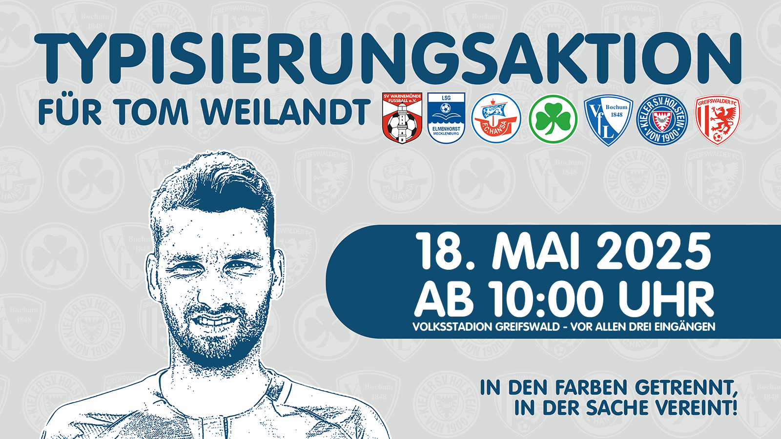 Vor dem Spiel wird es ab 10 Uhr eine große Typisierungsaktion für Tom Weilandt geben. Hier findet Ihr alle Infos dazu.