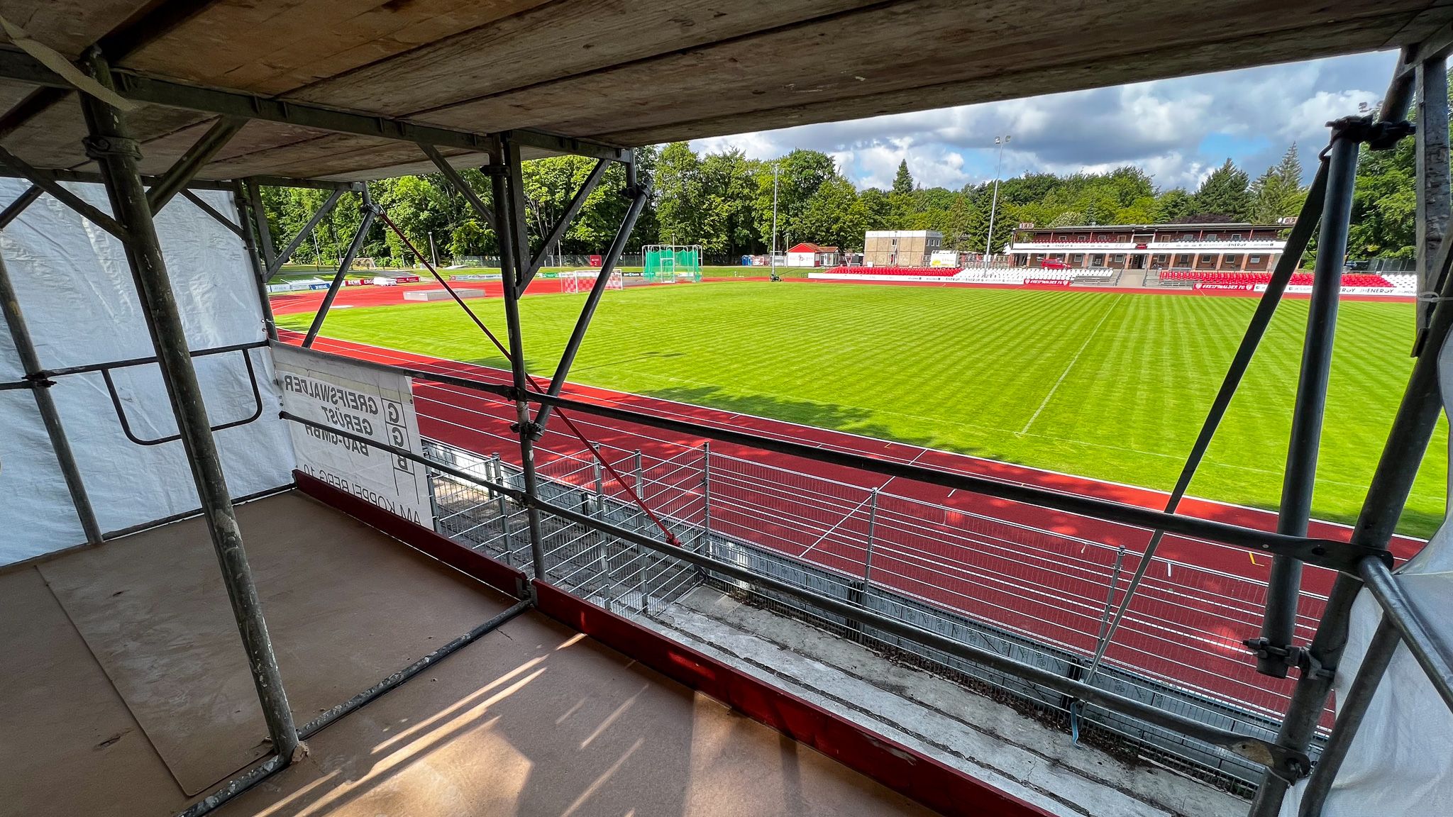 Na? Gesehen? Es gibt eine vielleicht von außen betrachtet kleine, faktisch aber sehr große und entscheidende Veränderung im Volksstadion! Wer am Samstag beim Spiel gegen den FC Eilenburg vor Ort war, wird es zweifelsohne bemerkt haben. Aber auch denjenigen, die vielleicht nur die Highlights bei den Kollegen von OSTSPORT.TV gesehen haben, dürfte es aufgefallen sein. Das Bild, es hat sich verändert, denn wir haben ihn endlich, den Fernsehturm! Es gehört zu den Auflagen und endlich konnten wir es realisieren. Die Kamerateams werden somit künftig nicht mehr auf der Tribüne stehen und die Zuschauer durch die großen Aufbauten stören. Andererseits können auch die Medienvertreter nun ganz in Ruhe arbeiten. Eine Win-Win-Situation. Und ein weiterer Win, die Flutlichtmasten sind nicht mehr im Bild. Noch ein Win: unsere schöne Tribüne ist es nun. Und der nächste Win, die Kameras stehen im Pufferblock auf der Gegengeraden, unsere Stimmungsmacher dürften also künftig gut zu hören sein. Also, kein Wunder, dass auch das Team mit einem Win gestartet ist!