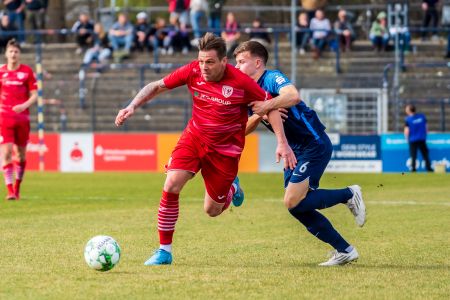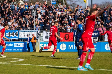 Mit dem guten Gefühl ging es in die Kabinen und in den zweiten Spielabschnitt. Und den konnte unser GFC klar für sich gewinnen. Immer wieder setzten sich unsere Kicker in der Hälfte der Babelsberger fest, die in der zweiten Halbzeit nur noch mit Kontern auf sich aufmerksam machten. Letztlich war es dann Guido Kocer, der den Führungstreffer mit einem Rückpass auf Kapitän Tom Weilandt einleitete. Weilandt’s Schuss wurde zunächst geblockt, aber so richtig konnten die Babelsberger die Situation nicht klären. Julian Rüh ließ auf Anthony Syhre klatschen, der spielte einen Doppelpass mit Aleksandar Bilbija und schoss den Ball mit Wucht aus 20 Metern in den Winkel. Ein herrlicher Treffer, den das Geburtstagskind da erzielte. Danach war es dann einfach nur noch Mentalität pur. Unsere Kicker verteidigten mit viel Herz und wollten unbedingt den dritten Auswärtssieg in dieser Spielzeit. Der Aufwand wurde am Ende belohnt, denn das Tor blieb in der Schlussphase sauber und unser GFC verdiente sich einen wichtigen Auswärtssieg. Die nächsten drei Punkte will sich unser Team dann schon am kommenden Dienstag holen, wenn Tennis Borussia Berlin zu Gast im Volksstadion sein wird. Anpfiff der Nachholpartie ist um 15:30 Uhr.