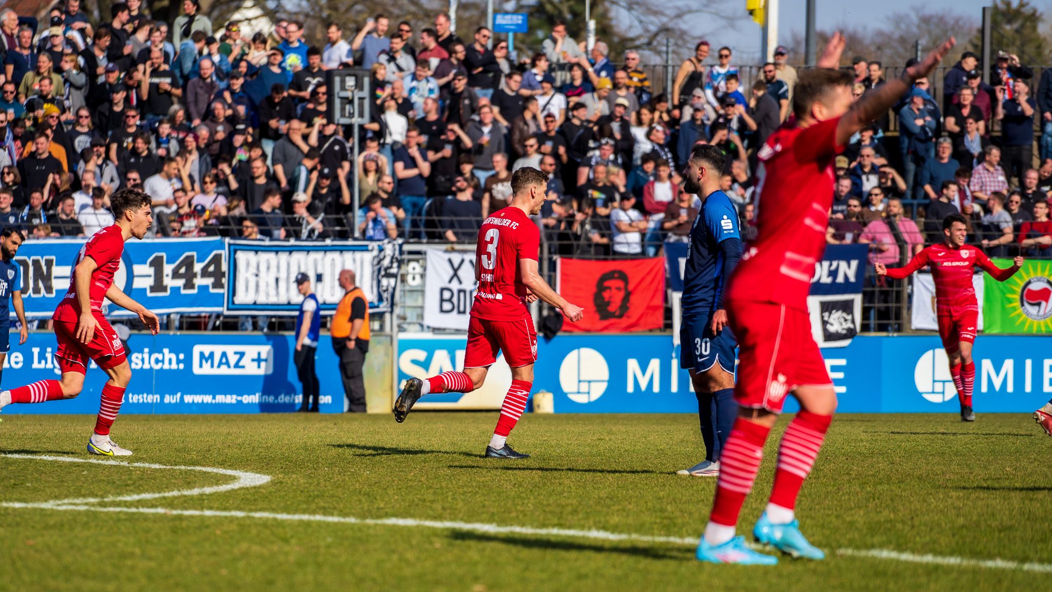 Mit 2:1 siegten unsere Kicker im Karl-Liebknecht-Stadion des SV Babelsberg. Wie im Hinspiel traf aber erstmal Rudolf Ndualu zur Führung für die 03’er. Noch vor der Pause glich Fabio Schneider mit seinem ersten Treffer für unseren GFC aus. Im zweiten Abschnitt gab es dann den Siegtreffer durch Anthony Syhre, der ebenfalls seinen ersten Treffer im GFC-Trikot erzielte.