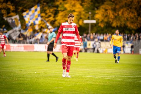 Und Jena ließ nicht locker. Nach einer guten Viertelstunde kam Butzen über die rechte Angriffsseite und suchte den Abschluss. Sein Schuss ging allerdings knapp am Tor vorbei (15.). Nur kurz darauf war es Eshele, der auf Jakubovs Gehäuse zulief. Unser Schlussmann ging aber ins Eins-gegen-eins und ging daraus auch als Sieger hervor (16.). Das 2:0 lag in der Luft.