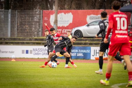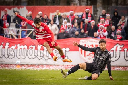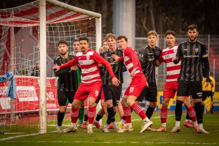 Im Minutentakt folgten die Highlights. Nach einem Freistoß drückte Eglseder den Ball zwar über die Linie, doch die Abseitsfahne verhinderte die Führung (15.). Harz traf kurz darauf per Kopf den Pfosten, Benyamina verpasste hauchdünn (16.). Ein weiterer Offensivschub folgte: Harz setzte sich stark gegen Ekui durch und setzte Atilgan in Szene, dessen Fallrückzieher missglückte (34.).