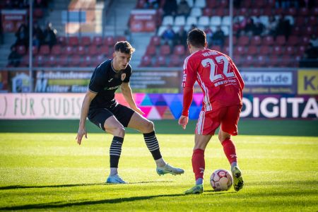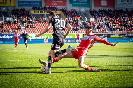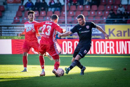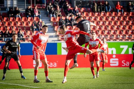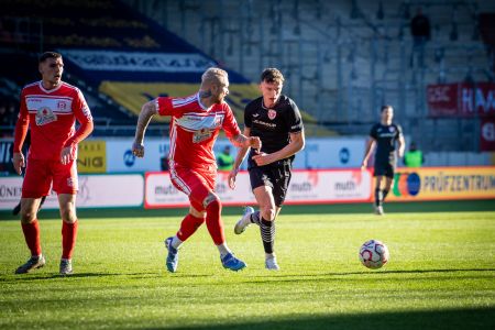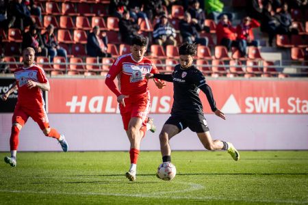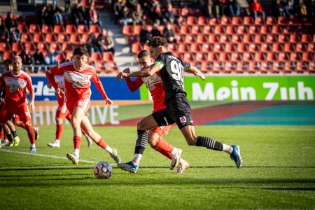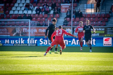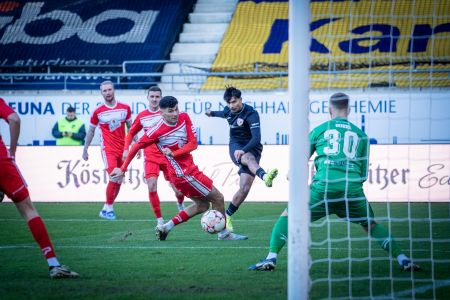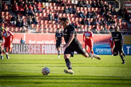 Von zwei Gesichtern sprach Soufian Benyamina nach der Partie unseres Greifswalder FC beim Halleschen FC. Gemeint war eine bärenstarke erste Hälfte und eine nachlässige Zweite. Mit zwei Änderungen startete Trainer Markus Zschiesche im Vergleich zum letzten Regionalligaspiel in Eilenburg in die Begegnung. Für Daedlow startete Vogt, Kocer ersetzte den gelbgesperrten Abu-Alfa. Nach einer Abtastphase von etwa zehn Minuten begann das Team von Markus Zschiesche immer mehr Kontrolle zu übernehmen und zwang die Gastgeber durch viel Druck wiederholt zu Fehlern im Spielaufbau. Die beste Gelegenheit entstand auch aus einer Umschaltbewegung, als ein weiter Ball den startenden Osman Atilgan fand. Der war frei durch, setzte seinen Linksschuss jedoch an den Pfosten. Ansonsten wurden die Angriffe leider zu unsauber zu Ende gespielt. Ein auf der gegnerischen Grundlinie eroberter Ball durch Kocer wurde zum Beispiel zu hektisch von Heil in die Mitte zu Atilgan gelegt, so fehlte die Präzision. Es blieb daher beim 0:0 zur Pause, doch das Trainerteam war mit der Leistung sehr zufrieden.