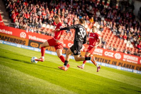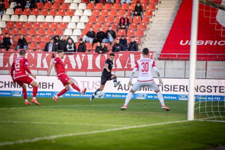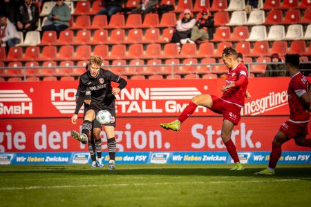Nach Wiederanpfiff nahm sich direkt Jannis Farr mal ein Herz, legte sich den Ball auf seinen schwächeren linken Fuß und versuchte zentral vorm Tor den Schuss, auch hier waren aber leider genug Beine im Weg. Danach ging es zumeist hin und her. Die klareren Chancen hatte aber weiterhin der FSV Zwickau, die das Tor zumeist nur knapp verfehlten. Meist ging es für die Hausherren aber eher über Standards. In der 65. Minute dann mal wieder eine gute Gelegenheit für unsere Jungs. Jannis Farr kam über die rechte Seite, verzögerte und ließ sich vom eingewechselten Ndualu hinterlaufen. Der Pass kam dann jedoch in die Mitte, wo Hüther abzog. Den Schuss hielt Zwickau-Keeper Hiemann erst im Nachfassen. Ein weiter Ball aus der eigenen Hälfte von ebenjenem Hiemann sollte dann für die Entscheidung sorgen. In der 72. Minute schlug den langen Hafer, der wurde in den Lauf von Daniel Haubner verlängert. Dieser ging mit Tempo an Eglseder vorbei, zog auf der kurze Eck ab und obwohl Jakubov noch dran war, flutschte das Leder in die Maschen – 1:0. Danach kamen wir leider nicht mehr zwingend vor das gegnerische Tor, sodass wir uns am Ende erstmals dem FSV Zwickau geschlagen geben mussten und ohne Punkte im Gepäck die Heimreise antraten. Am kommenden Samstag empfangen wir den FC Carl Zeiss Jena im Volksstadion, die nächste Gelegenheit für den langersehnten Dreier.