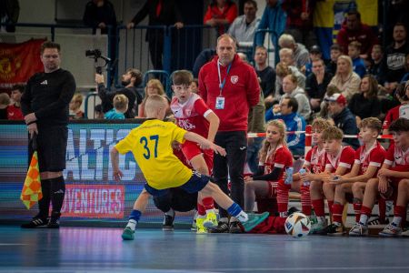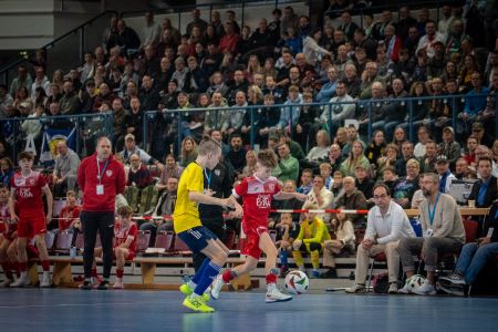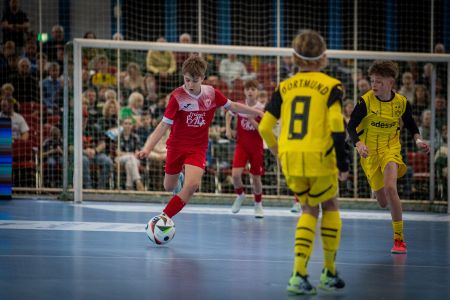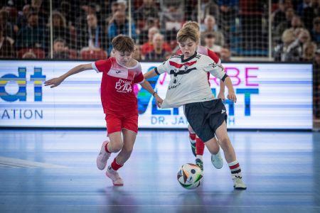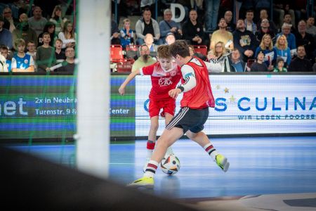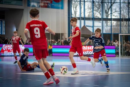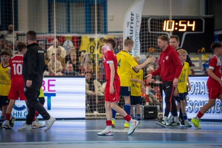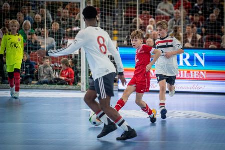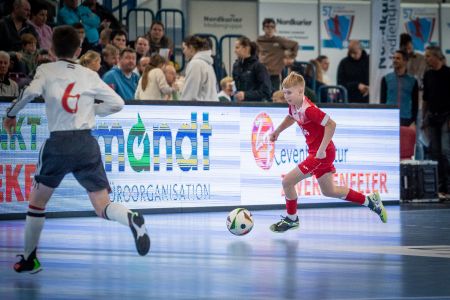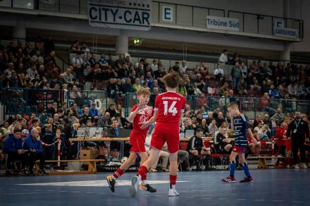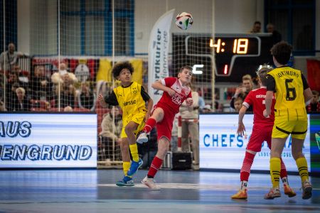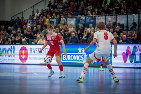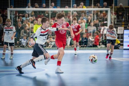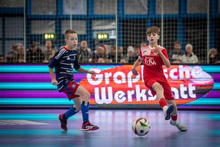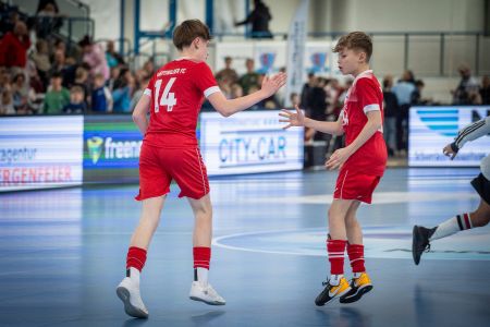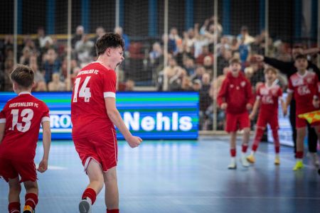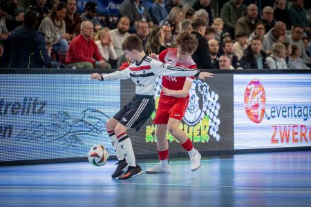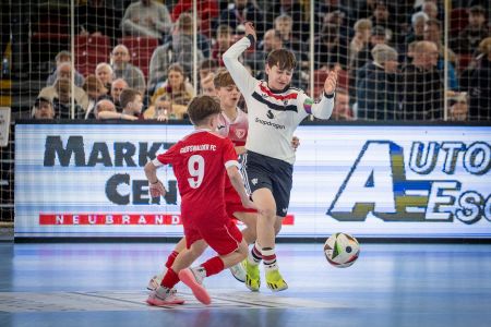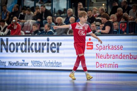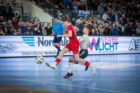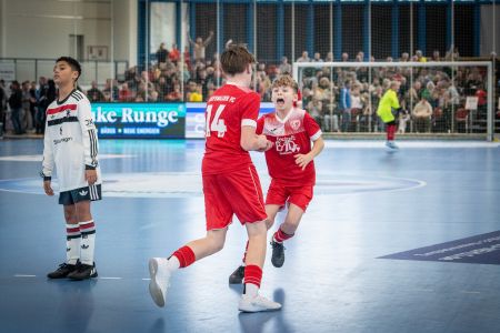 Es war vor dem Turnier als das große Ziel ausgegeben - Ein einstelliger Tabellenplatz und der wurde es am Ende auch! Unsere Kicker waren alle glücklich über den achten Platz beim 57. Knabenturnier, Europas größtem D-Junioren-Hallenturnier. Vor 3.000 Zuschauern kamen unsere Kicker allerdings nicht optimal ins Turnier. Zu groß war der Respekt vor den großen Namen und der Kulisse. Im ersten Turnierspiel musste man sich gegen den letztlichen Turniersieger Borussia Dortmund mit 0:3 geschlagen geben. Auch im zweiten Gruppenspiel gegen den Lokalmatadoren Neubrandenburg fehlte der Mut zum einfachen Hallenfußball und man ging auch nach dieser Partie als Verlierer vom Platz. Jetzt war dann irgendwie nichts mehr zu verlieren und wenn man als Greifswalder FC im dritten Spiel gegen Manchester United ran muss, dann sowieso nicht mehr. In diesem Spiel griffen auf einmal Spielzüge und in der Defensive wurde gut verteidigt. Trotz Rückstand steckte unser GFC nicht auf und kam zum Ausgleich durch Piet Hoffmann. Nach einem Handspiel außerhalb des Strafraums vom ManU-Keeper waren unsere Kicker auf einmal in Überzahl und spielten diese sehr gut aus, konnten den Ersatzkeeper aber nicht überwinden. Kurz vor der Schlusssirene durfte der eigentliche ManU-Keeper dann wieder mitmischen und kam bei einer GFC-Ecke zurück aufs Feld. Dies bemerkte aber sein Ersatzmann nicht und nahm den Ball in die Hand. Folgerichtig gabs Elfmeter und Piet Hoffmann trat an. Unsere Nummer 14 setzte den Ball in die Mitte und feierte mit seinen Jungs den 2:1-Siegtreffer. Die Highlights vom aufregenden Spiel gegen ManU haben wir hier für Euch!