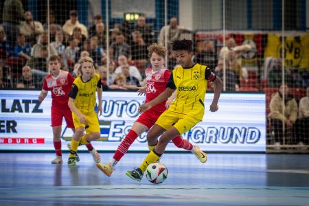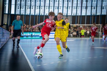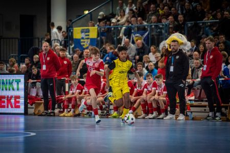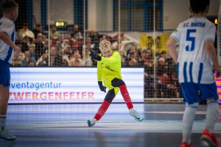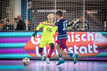Mit diesem Sieg waren unsere Kicker dann endlich im Turnier angekommen und legten jede Nervosität ab. Gegen den späteren Finalisten RB Leipzig mussten sich unsere Kicker zwar mit 0:3 geschlagen geben, jedoch blieb im letzten Gruppenspiel die Chance auf Platz 4 in der Gruppe. Und diesen holten sich unsere Jungs mit einem bärenstarken Auftritt gegen den Hamburger SV. Wieder war es Piet Hoffmann, der für unseren GFC zur Führung traf. Phil Strysewske, Johann Kampf und erneut Piet Hoffmann legten nach und der GFC führte mit 4:0. Am zweiten Turniersieg konnte auch der Ehrentreffer für den HSV nichts ändern und somit mussten unsere Kicker im Spiel um Platz 7 gegen den FC Hansa Rostock ran. Auch dort kam unser GFC gut ins Spiel und kam durch den Treffer von Johann Kampf zur Führung. In der Folge kam aber auch der FCH zu Chancen und nutzte sie zweimal. Am Ende reichte es für Hansa zum knappen Sieg und unsere Jungs mussten sich mit dem 8. Platz vergnügen. Wie schon erwähnt, kamen unsere Gruppenkontrahenten Borussia Dortmund und RB Leipzig dann auch ins Finale, wo der BVB die Partie souverän mit 3:1 gewinnen konnte. Bei der Siegerehrung holte sich unser Keeper Jarne Hotopp dann noch die Ehrung zum "Besten Torhüter des Turniers" ab. Am Ende war es ein toller Tag für alle Beteiligten. Egal ob die Jungs, die vor einer geilen Kulisse spielen durften oder die Trainer und Eltern, die alles begleiten durften.