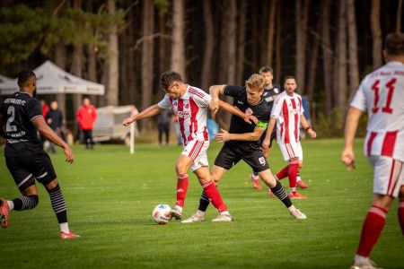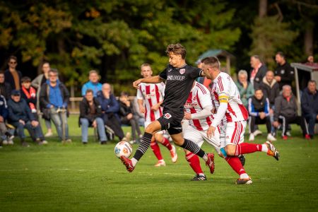 Für unseren Greifswalder FC ging es in der 3. Runde des Landespokals nur um eines: das Weiterkommen. Beim SFV Nossentiner-Hütte aus der Landesklasse starteten unsere Jungs erwartet offensiv, fanden jedoch zunächst kein Mittel gegen die gut verteidigenden Gastgeber. Ein Standard musste her und so fand ein Eckball von der linken Seite, getreten von Joe-Joe Richardson, den Kopf von Oliver Daedlow. Der Mittelfeldmann köpfte das Leder zur Führung ein, aber auch danach blieb der SFV hinten sehr sicher. Einzig Stürmer Sandy Pagel war für Umschaltaktionen vorne, der Rest, vor allem Verteidiger Martin Stein, warfen sich in alles rein. Torhüter Kornfeld parierte dann den Rest, der auf das Tor kam und etwas Glück kam auch dazu, als Joe-Joe der Ball frei vorm Tor versprang. Nur ein weiteres Mal musste er hinter sich greifen, als Richardson über die rechte Seite durchbrach und flach in die Mitte spielte, dort schob Theo Harz über die Linie. Das 2:0 war auch der Halbzeitstand.