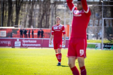Nach der Pause machten unsere Jungs sofort Druck. In der 49. Minute kam Heil von links und steckte auf Atilgan durch, der erst ins Eins-gegen-eins gehen wollte, dann aber auf Heil zurückspielte. Dieser wollte Pieles tunneln, aber der Plauener Torwart setzte sich im letzten Moment auf den Ball und verhinderte somit die Greifswalder Führung.