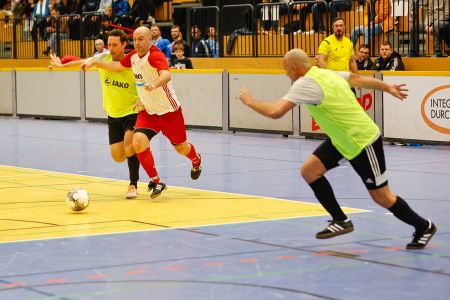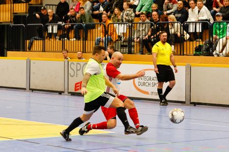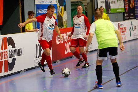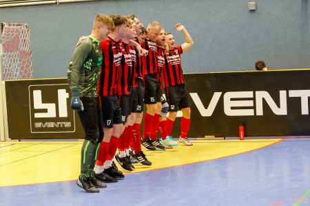 Am Samstag ging es los mit der ersten Vorrundenstaffel und direkt einigen richtig hochklassigen Duellen. Dies lag nicht zuletzt auch an der Besetzung innerhalb der Teams. Die HSG Uni Greifswald trat zum Beispiel mit einem großartigen Kader an, dem auch die Ex-GFC-Spieler Adam Marczuk und Robert Müller angehörten. Marczuk erzielte als Torhüter sogar zwei Treffer selbst auf dem Weg in die Endrunde, den die HSG als stärkstes Team locker erreichte. Satte 27 Treffer in fünf Spielen, die sie natürlich alle gewannen, sprachen eine deutliche Sprache. Ebenfalls in die Endrunde zog der SV Sturmvogel Lubmin ein, der wohl eines der emotionalsten Spiele des Turnieres bestritt. Gegend den HFC Greifswald kassierten die Lubminer trotz Überzahl zwei Gegentreffer und gerieten mit 1:3 in Rückstand. Doch sie schafften noch den Ausgleich und leiteten damit die emotionale Schlussphase ein. Dort parierte Torhüter Lars Kampf kurz vor Ende zwei Mal glänzend, ehe der Ball nochmal nach vorne gespielt wurde, sodass Tom Gohl mit der Schlusssirene den 4:3-Siegtreffer für den Sturmvogel erzielte. Als drittes Team aus der Staffel schaffte es Titelverteidiger FSV Blau-Weiß Greifswald in die Endrunde, weil er gegenüber der SG Reinkenhagen das bessere Torverhältnis hatte. Ohne Punkte blieb der FSV Traktor Kemnitz.